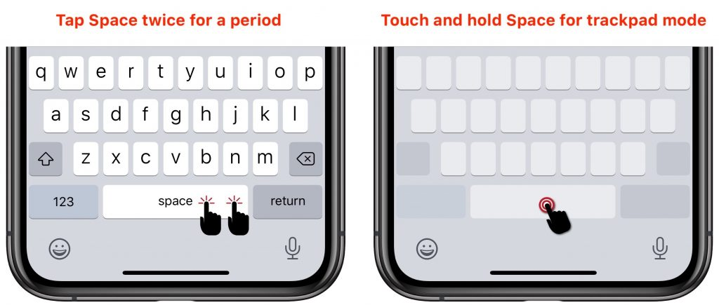 Bàn phím iPhone cũng có thể biến thành trackpad ảo chỉ bằng cách nhấn giữ phím cách để di chuyển con trỏ chính xác hơn.