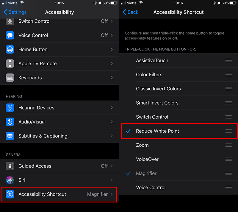Nếu thường xuyên dùng điện thoại ban đêm, bạn có thể bật Reduce White Point để giảm độ sáng màn hình xuống thấp hơn mức mặc định.