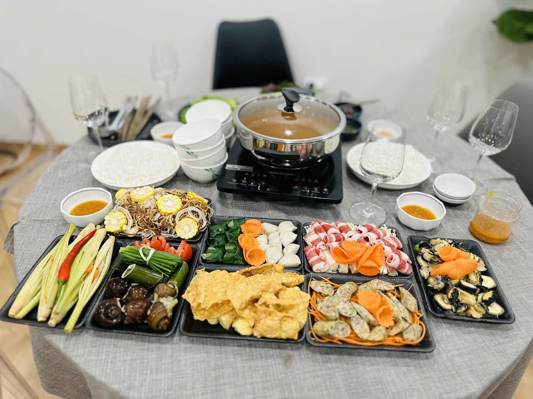 Nước chấm là phần không thể thiếu khi ăn lẩu, nhưng nhiều loại nước chấm, nước tương hay các loại sốt pha sẵn có hàm lượng calo và natri cao. Một thìa sốt tương đen có thể chứa hơn 100 calo, tương đương một phần ba bát cơm trắng. Thay vì dùng sốt chế biến sẵn, bạn có thể tự làm nước chấm từ các nguyên liệu tự nhiên như hành, gừng, tỏi, củ cải bào và nêm thêm giấm trắng, giấm đen hoặc một ít nước tương. Cách này giúp giảm lượng calo, natri và dầu mỡ, mang đến hương vị nhẹ nhàng, lành mạnh hơn cho bữa lẩu.