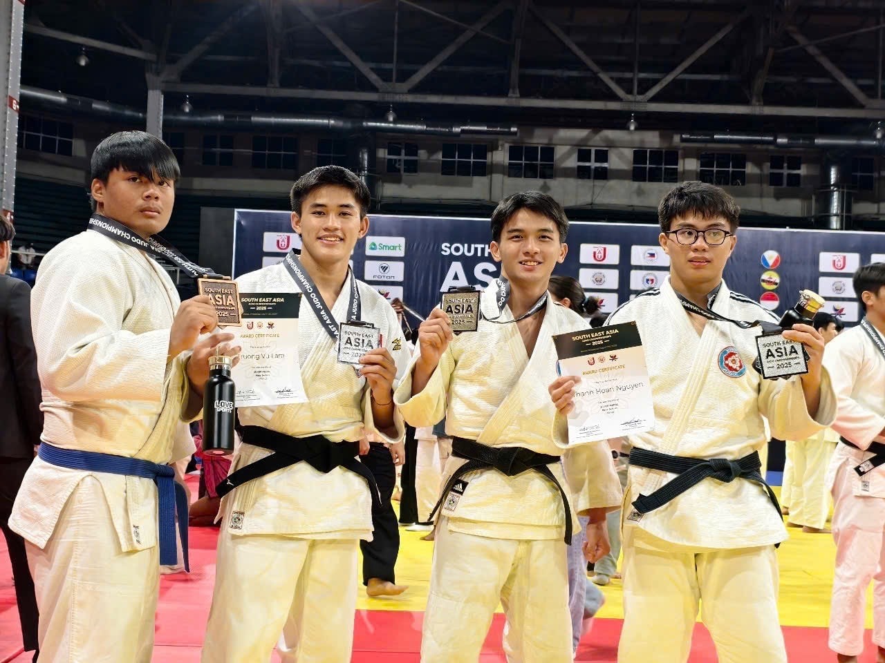 Vận động viên Lâm Trường Vũ môn Judo (thứ 2 từ trái qua)