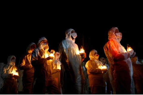 Nhân viên Nhà máy điện hạt nhân Chernobyl tại buổi lễ hôm 26/4/2026 tưởng niệm những người thiệt mạng sau thảm họa hạt nhân năm 1986 Ảnh: Reuters
