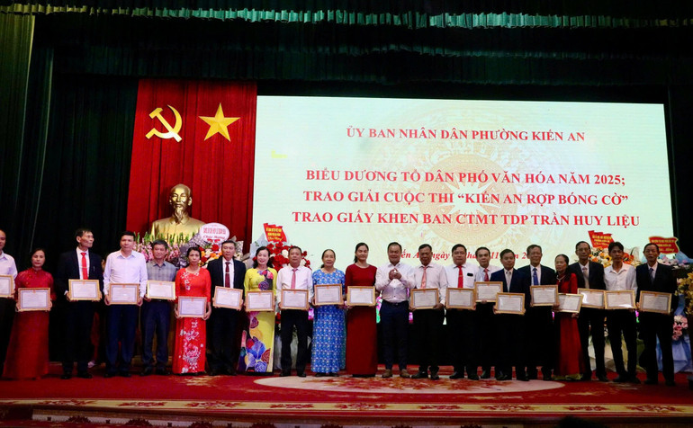 Tổ dân phố Trần Huy Liệu và trường Tiểu học Nguyễn Du đoạt Giải Nhất thi trang trí không gian “Kiến An rợp bóng cờ”, trường Tiểu học Quang Trung đoạt Giải Nhất với nội dung video, ảnh ghi lại khoảnh khắc “Tự hào dưới lá cờ Tổ quốc”. Giải Chuyên đề “Treo cờ sáng tạo” trao cho Trung tâm Phục vụ Hành chính công và Phòng Văn hóa - xã hội phường, Giải Chuyên đề “Rợp bóng cờ ấn tượng” trao cho Trung tâm sự nghiệp công phường. UBND phường trao giấy khen cho Ban Công tác mặt trận Tổ dân phố Trần Huy Liệu có thành tích xuất sắc trong thực hiện Cuộc vận động“Toàn dân đoàn kết xây dựng nông thôn mới, đô thị văn minh” năm 2025.