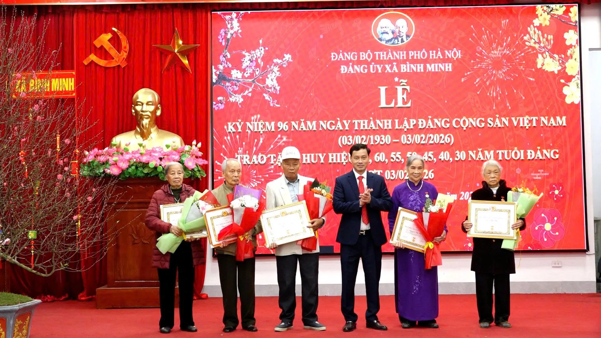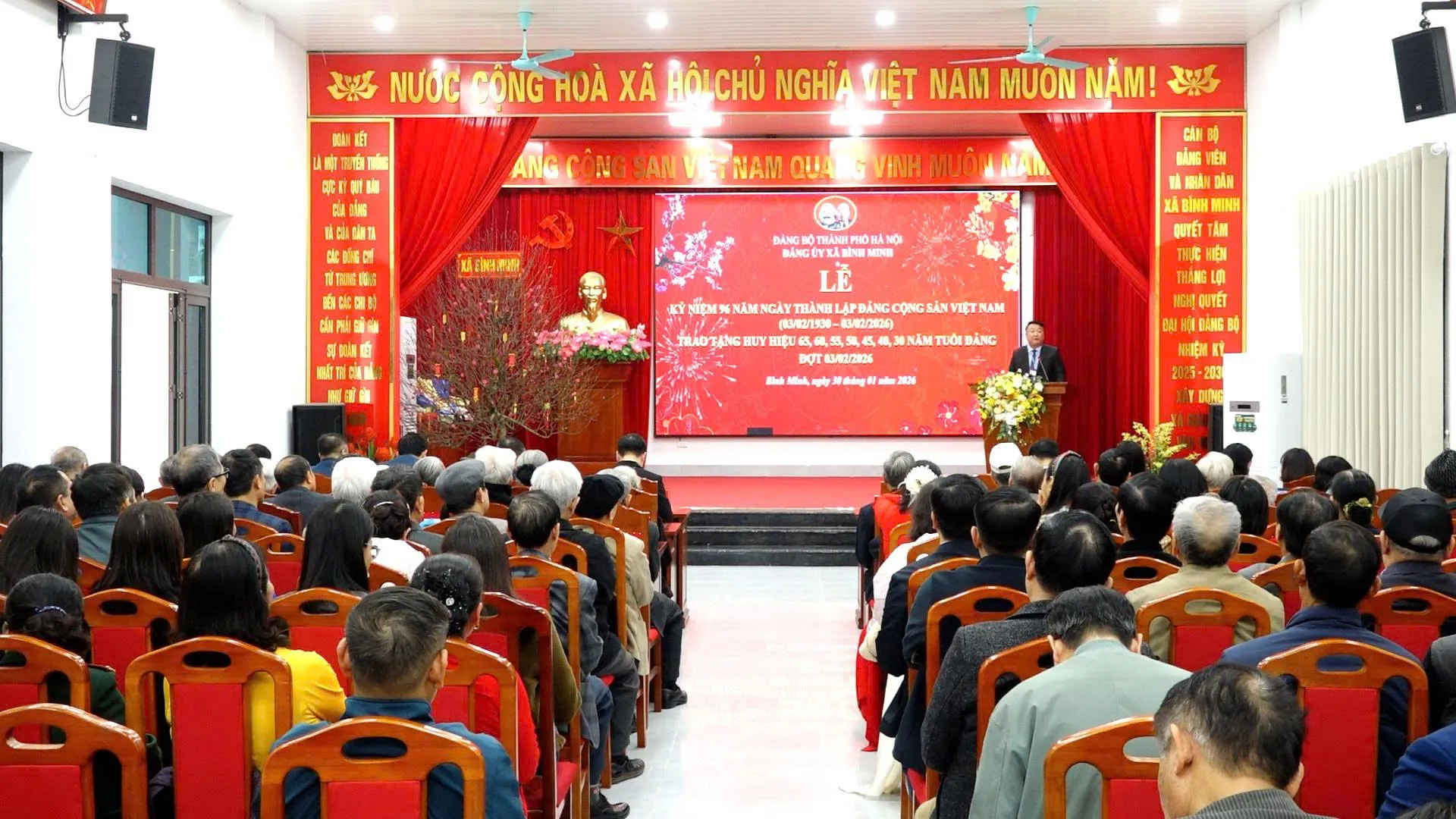 Phát biểu tại buổi lễ, Bí thư Đảng ủy xã Bình Minh Nguyễn Khánh Bình khẳng định: đây không chỉ là niềm vinh dự, tự hào của các đảng viên được trao tặng Huy hiệu Đảng, mà còn là niềm vui chung, niềm tự hào của toàn Đảng bộ xã Bình Minh và Đảng bộ TP Hà Nội.