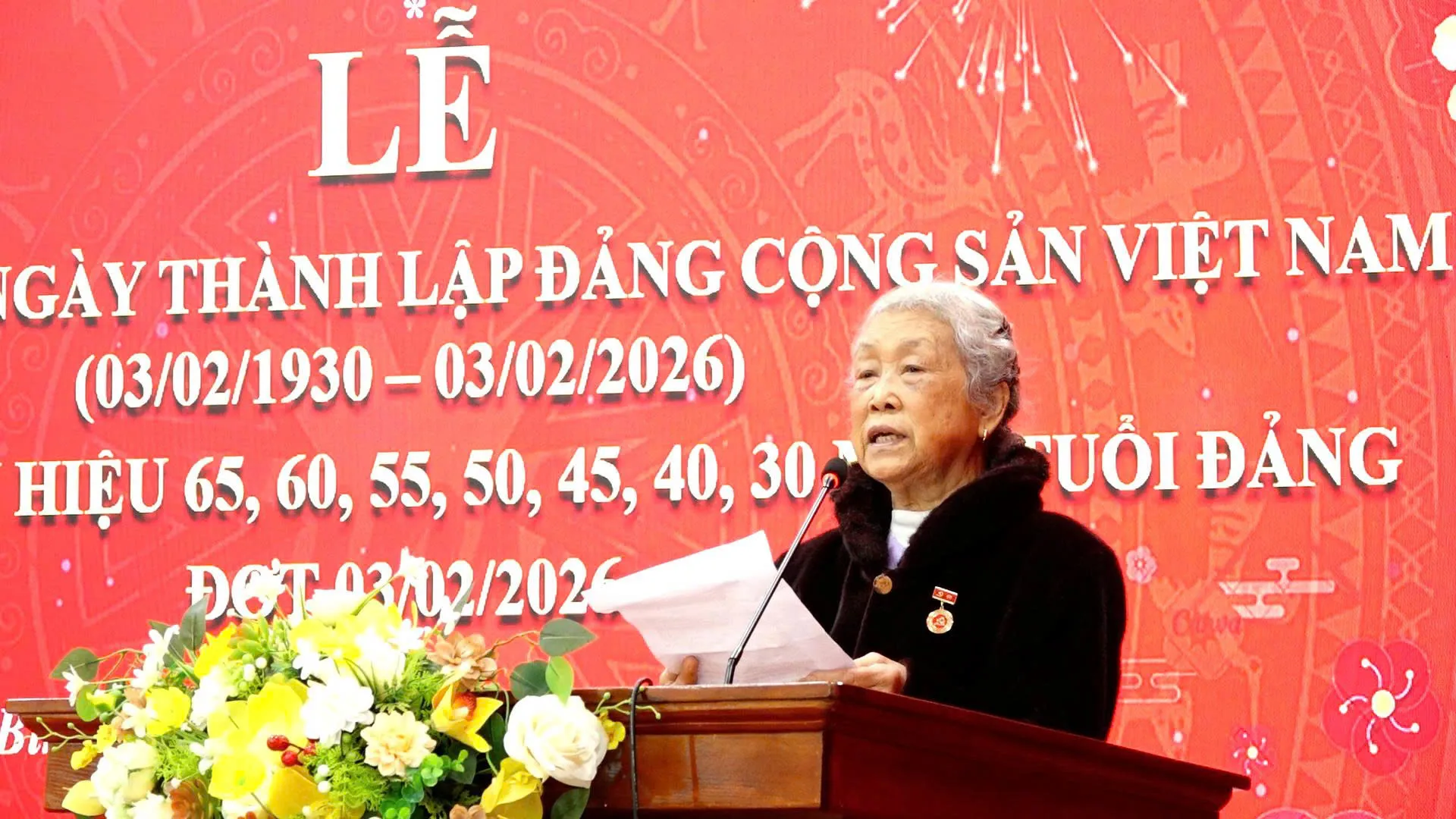Bà Doãn Thị Phái – đảng viên 60 năm tuổi đảng chia sẻ cảm tưởng tại buổi lễ.