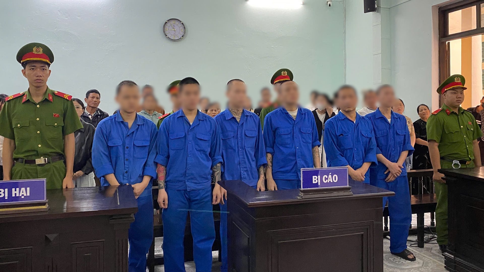 6 bị cáo là: Nguyễn Phước Thạnh (SN 1989), Nguyễn Ngọc Bình (SN 2002), Trương Ngọc Khánh (SN 2004), Phan Văn Ngọc (SN 2002), Nguyễn Tuấn Ngọc (SN 1978) và Trần Duy (SN 1996) cùng trú tại TP. Huế.