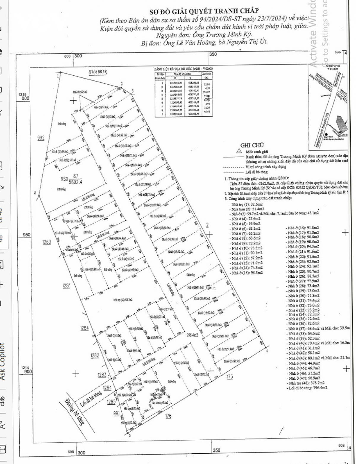 Tính đến tháng 11/2023, TAND TP. Tân Uyên đã ghi nhận trên thửa đất đang tranh chấp có tới 48 công trình xây dựng trái phép (gồm 6 căn nhà cấp 3, 30 căn nhà cấp 4 và 2 dãy nhà trọ), hình thành một khu dân cư tự phát trên đất nông nghiệp, gây bức xúc dư luận.