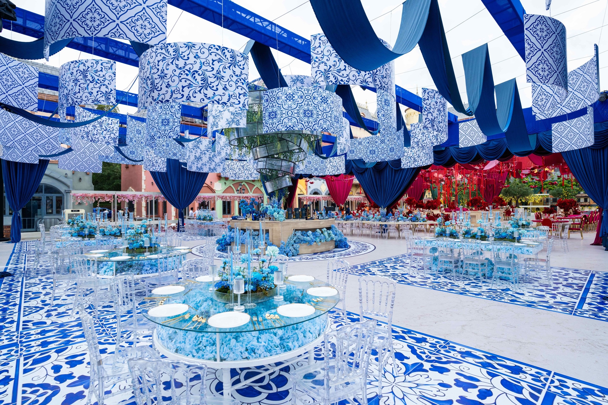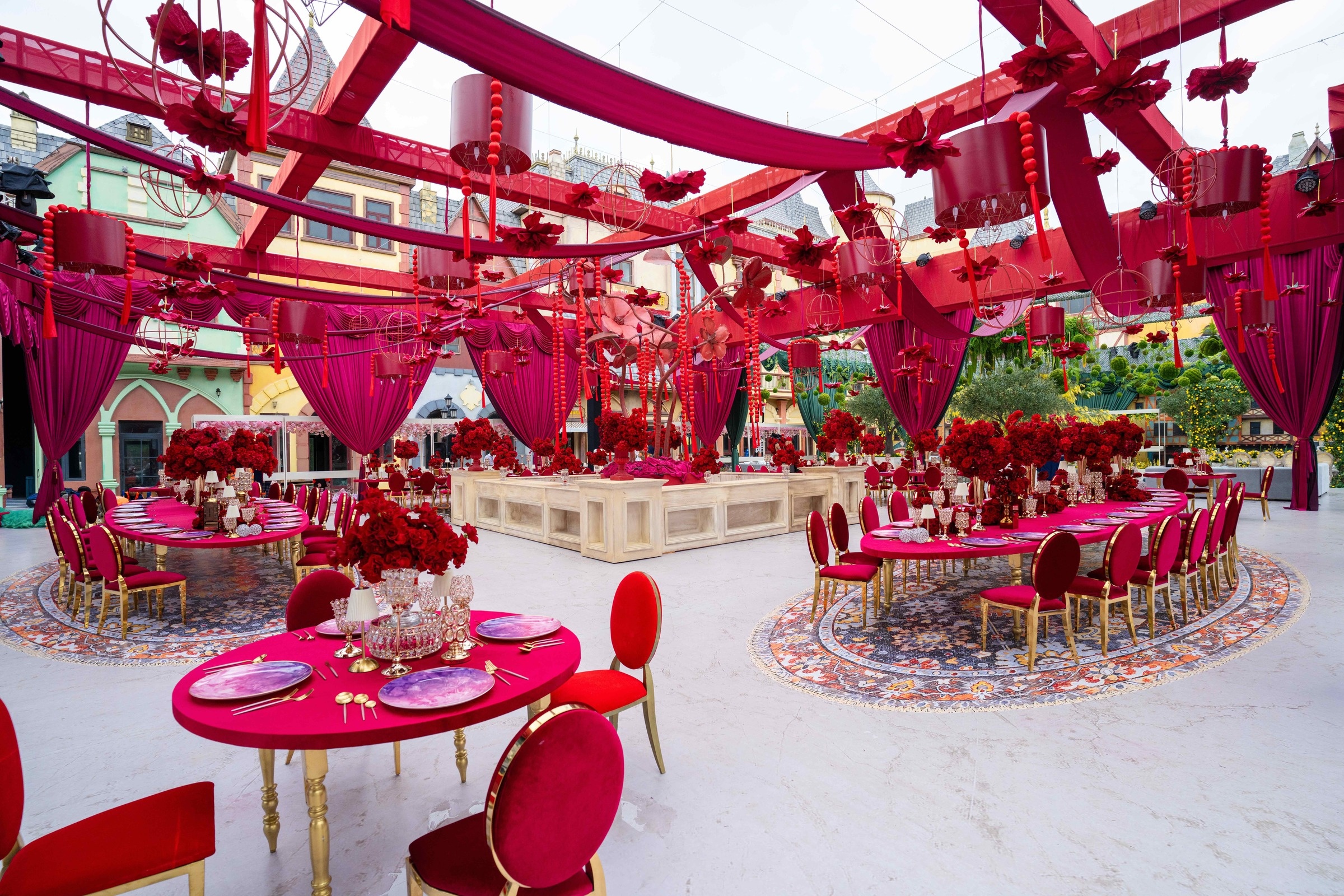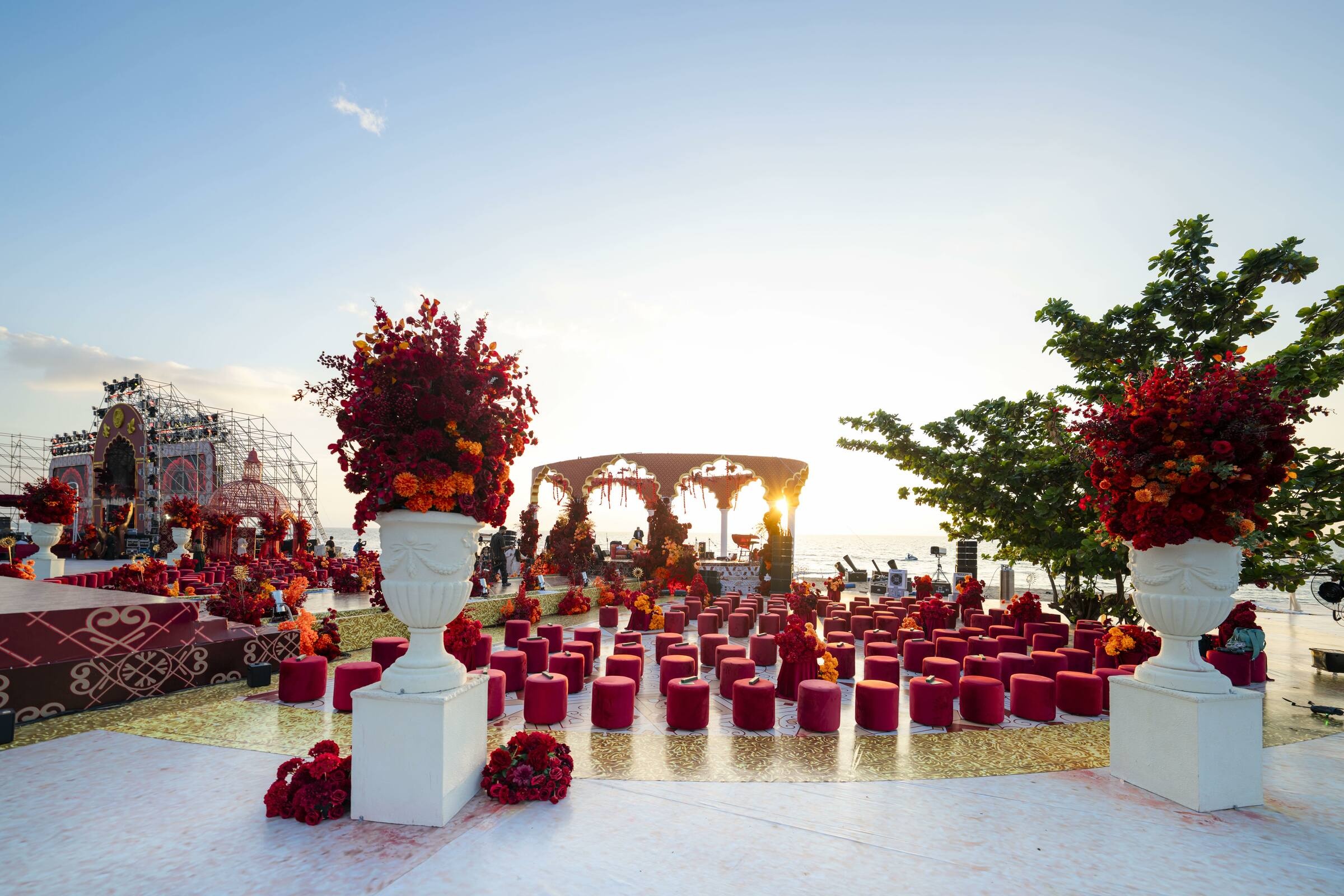Theo bà Sahara, chuỗi sự kiện kéo dài 7 ngày, trong đó các ngày 3-5/12 là loạt nghi lễ chính theo truyền thống Ấn Độ. Trong thời gian này, cả bắc đảo gần như hóa thành một đại lễ hội, với những đêm tiệc theo chủ đề được dàn dựng tỉ mỉ, trang trí quy mô lớn. Riêng phần thiết kế, trang trí và set-up sân khấu được ước tính trên 2 triệu USD. Tổng số nhân sự phục vụ cho lễ cưới lên tới khoảng 5.000 người, bao gồm đội ngũ từ Việt Nam, Singapore và Ấn Độ.
