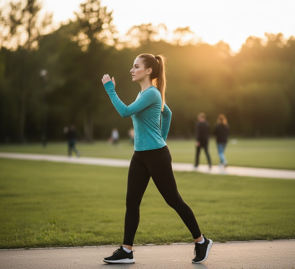 Đi bộ nhanh kết hợp vung tay giúp biến hoạt động đi bộ thông thường thành bài tập đốt mỡ toàn thân. Động tác vung tay chủ động làm tăng nhịp tim, huy động cơ thân trên và thúc đẩy quá trình đốt cháy mỡ thừa mà không gây áp lực lớn lên khớp. Duy trì thói quen này giúp cải thiện sức bền, làm săn chắc vòng eo và bảo vệ hệ cơ - xương - khớp hiệu quả.