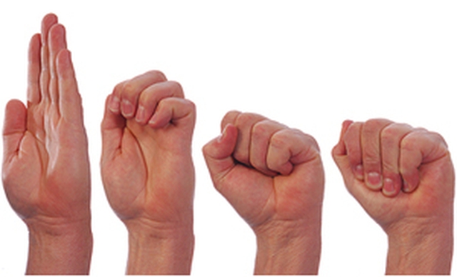 Sau đó, nắm tay nhẹ nhàng (ngón cái nắm chặt bên ngoài các ngón tay), giữ khoảng 5 giây, sau đó mở rộng các ngón tay hoàn toàn; lặp lại 10 lần.