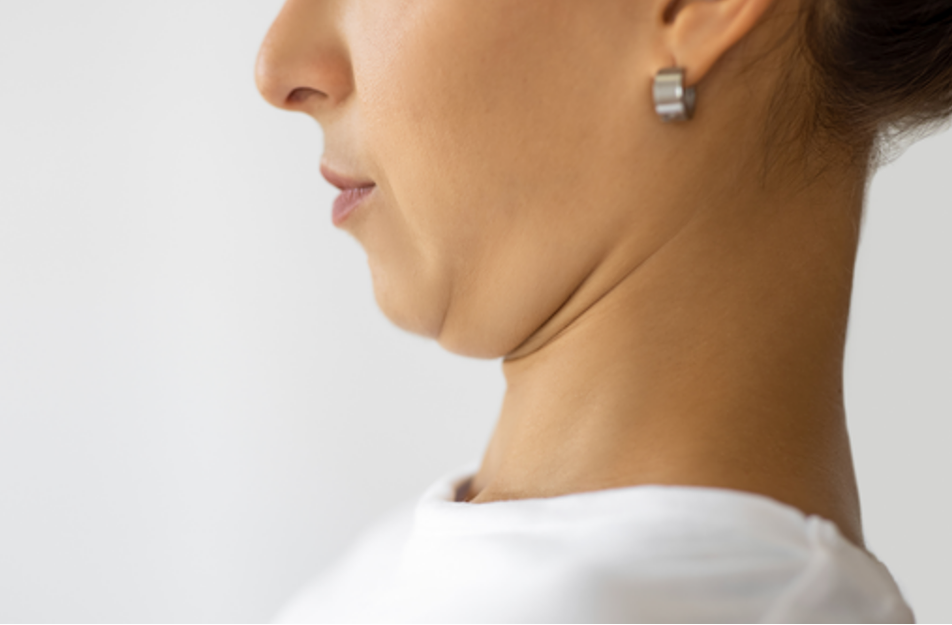 Từ từ kéo cằm thẳng về phía cổ, tạo cảm giác "cằm đôi" nhẹ, nhưng không cúi đầu xuống;