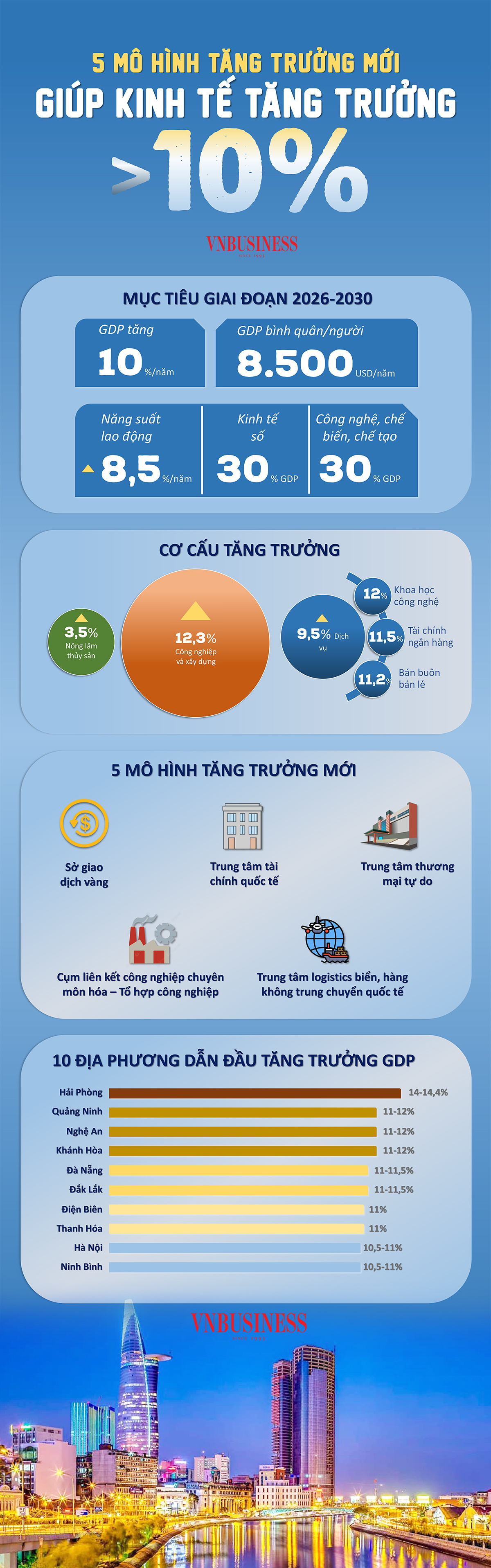 Cùng với đó, các mô hình phát triển mới như Sở Giao dịch vàng, Trung tâm Tài chính quốc tế, Khu thương mại tự do... được xem là trụ cột thúc đẩy tăng trưởng kinh tế trong thập kỷ tới.