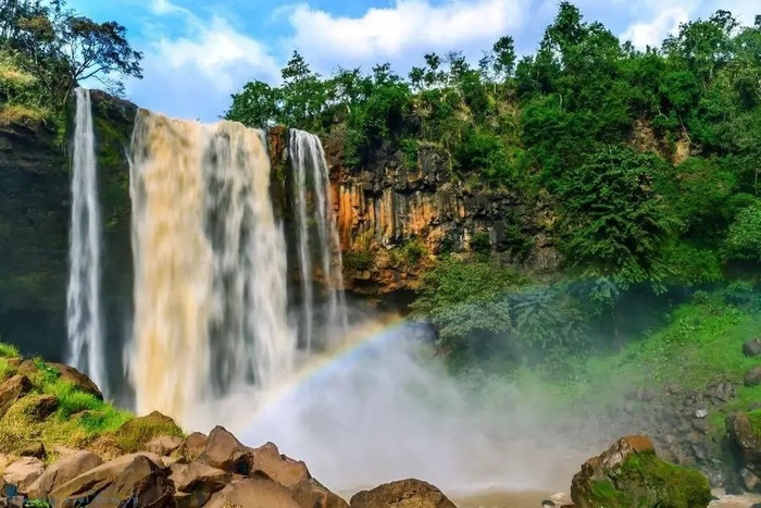 Nằm giữa khu rừng ở huyện Chư Sê, cách Pleiku khoảng 45 km, thác Phú Cường được xem là một trong những thác nước đẹp nhất Gia Lai. Dòng thác cao hơn 45 mét, đổ xuống từ vách đá bazan đen tuyền, tung bọt trắng xóa giữa không gian xanh mát.