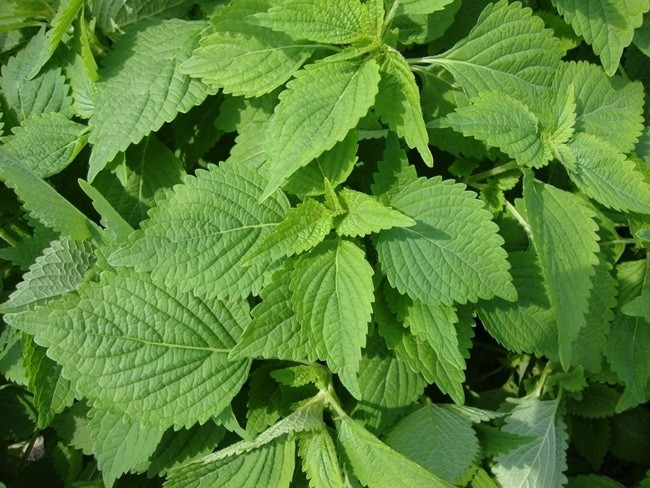 Tía tô là cây gia vị quen thuộc, thường được trồng trong chậu hoặc luống nhỏ. Tinh dầu trong lá tía tô khiến muỗi mất phương hướng, không dám đậu gần. Ảnh: Internet