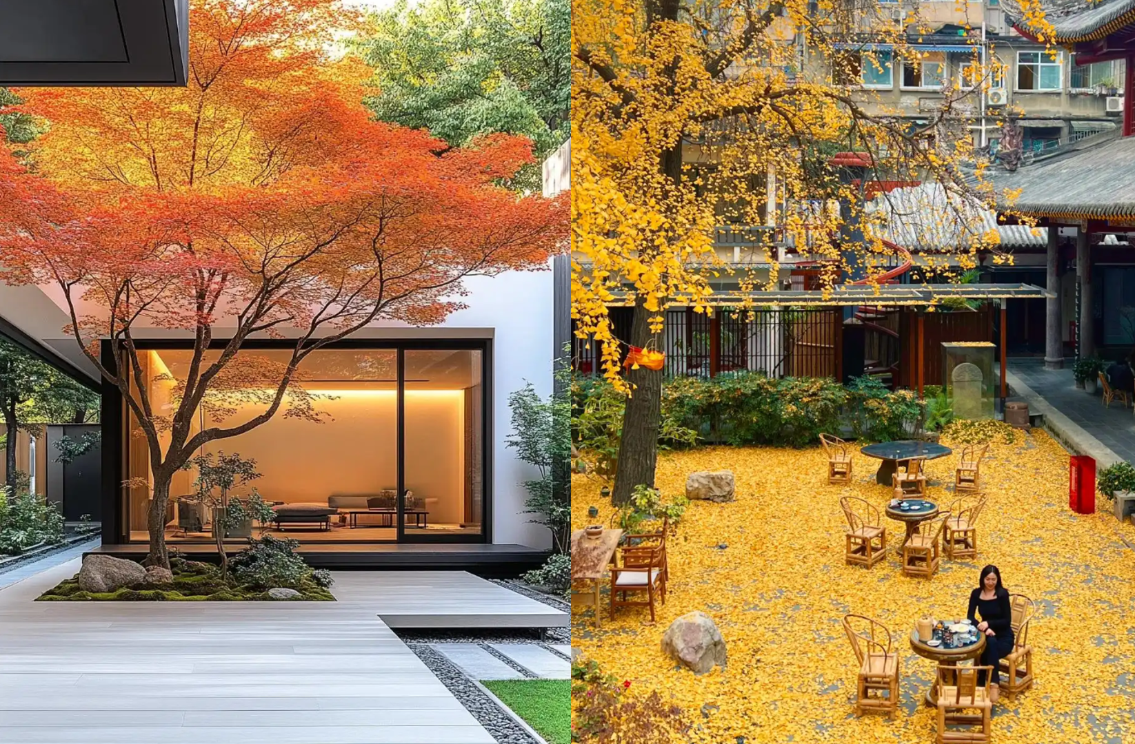 Cây bạch quả mùa thu lá vàng rực, biểu tượng cho trường thọ và tài lộc. Ảnh: Baidu
