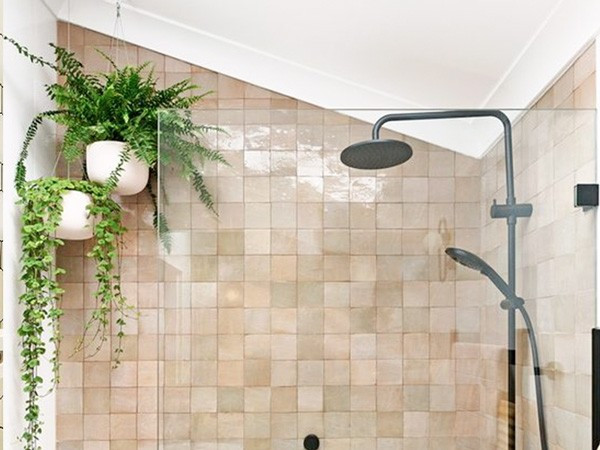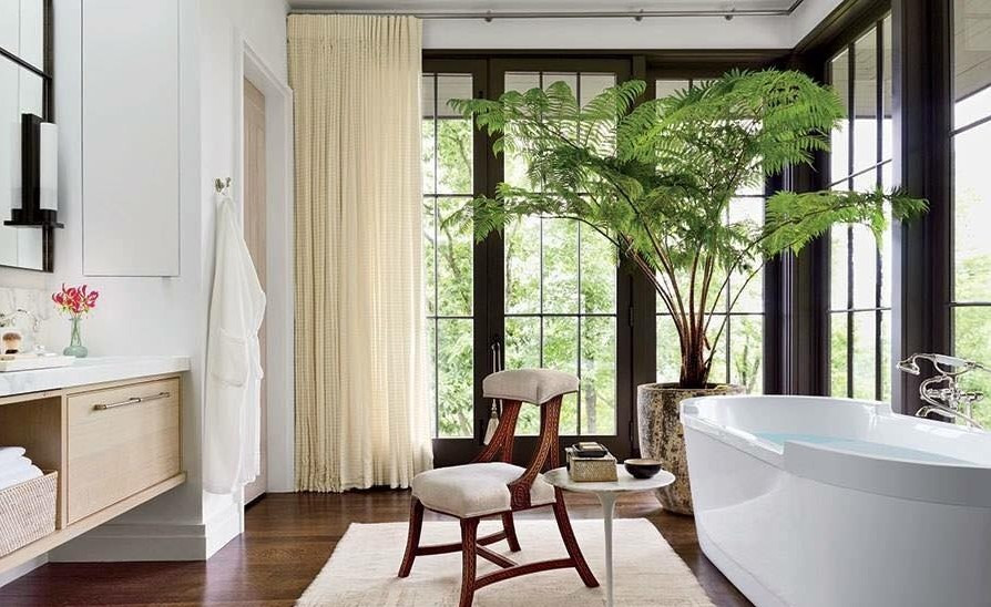 Tán lá xòe rộng, mềm mại của dương xỉ mang đến cảm giác thư giãn, gần gũi với thiên nhiên, biến phòng tắm thành nơi nghỉ ngơi đúng nghĩa. Ảnh: AD
