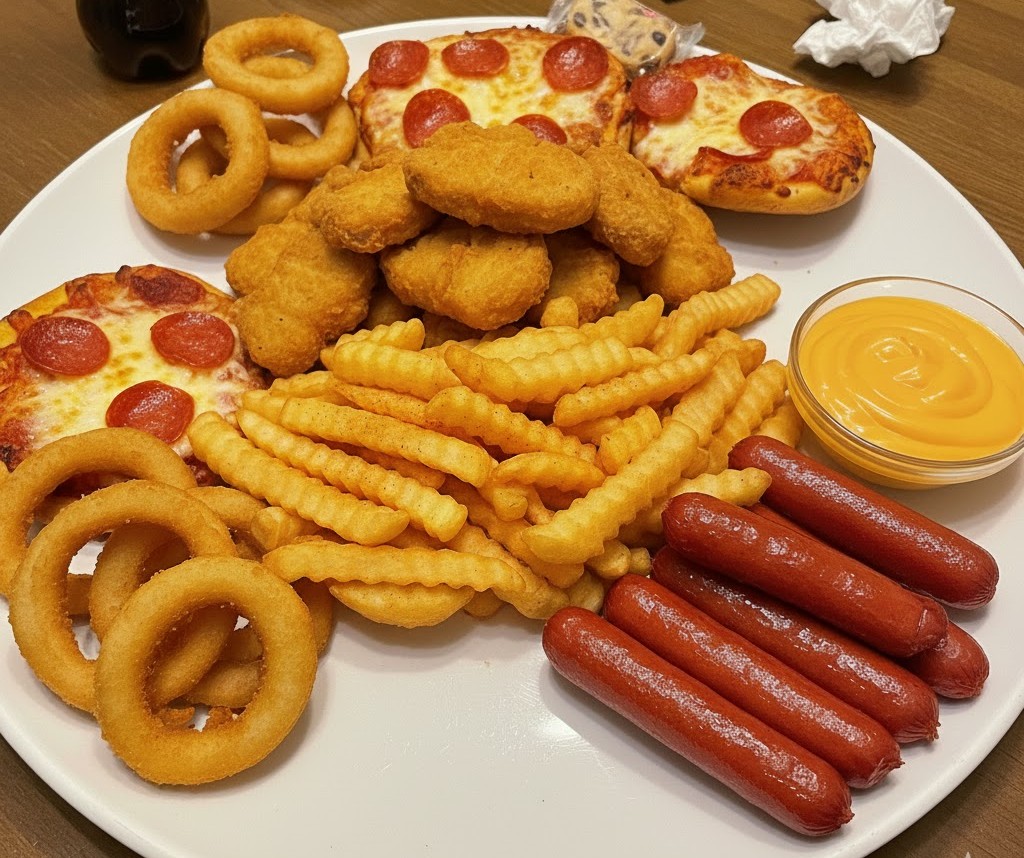 Thịt xông khói, xúc xích, thịt nguội chứa nhiều muối, chất béo bão hòa và phụ gia thực phẩm. Việc tiêu thụ thường xuyên các loại thịt chế biến sẵn có liên quan đến tình trạng viêm mạn tính, rối loạn chuyển hóa và tăng tích mỡ nội tạng. Đặc biệt, chất béo chuyển hóa – thường có trong thức ăn nhanh và đồ nướng công nghiệp – được xem là yếu tố nguy cơ cao đối với sức khỏe tim mạch và vòng eo.