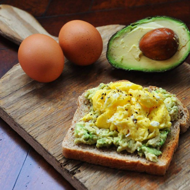 Quả bơ và trứng ăn kết hợp mang lại năng lượng bền vũng.