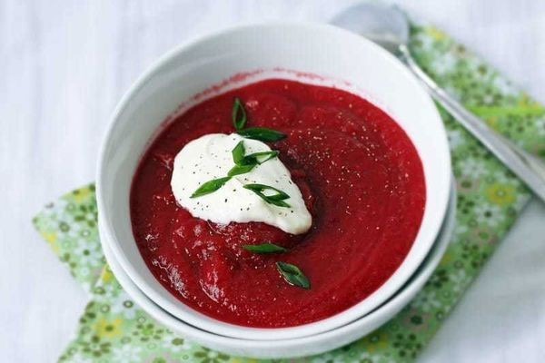 Một món súp khác không thể bỏ qua là súp củ dền – vừa đẹp mắt vừa tốt cho sức khỏe. Củ dền chứa nhiều folate và chất chống oxy hóa, giúp hỗ trợ tuần hoàn máu và làm đẹp da. Khi hầm cùng khoai tây, cà rốt, hành tây rồi xay nhuyễn, món súp có màu đỏ tím bắt mắt, vị ngọt nhẹ và hương thơm đặc trưng. Chỉ cần thêm một chút kem tươi, súp củ dền trở nên mịn mượt, béo nhẹ, rất phù hợp cho bữa sáng hoặc tối những ngày se lạnh. Ảnh minh họa