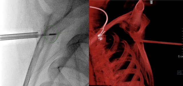 Trực tiếp điều trị ca bệnh, TS.BS Nguyễn Ngọc Cương (Trưởng khoa Can thiệp điện quang – Bệnh viện Đại học Y Hà Nội) cho biết: Khi đã phát hiện ra vị trí tổn thương, các bác sĩ về ngoại khoa khá “e ngại” về ca phẫu thuật này. Bởi tổn vùng xương là một ổ rất nhỏ chỉ có 5mm nằm ở trong xương vai. Trong khi đó xương vai là một xương dẹt rất khó xác định được vùng tổn thương, đây gần như là một phương án không khả thi.