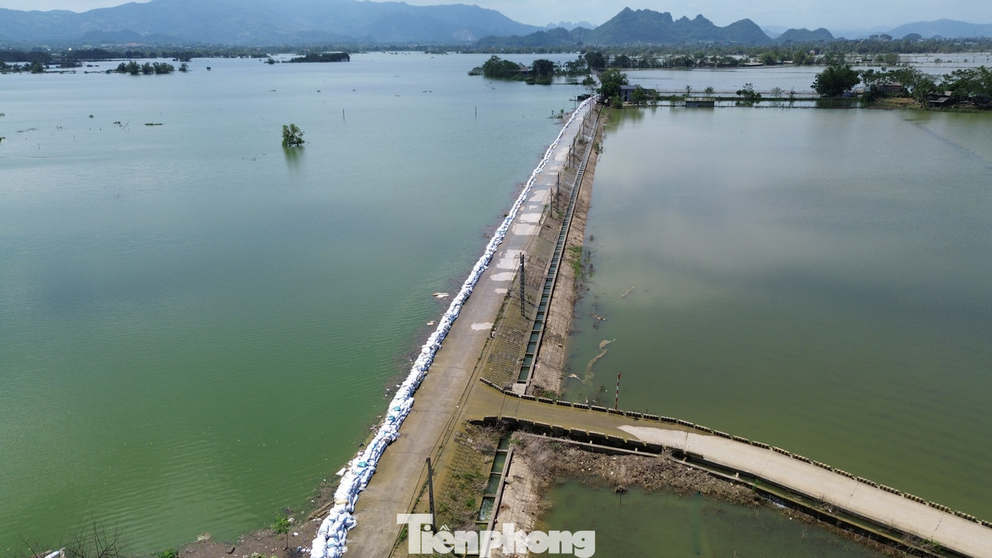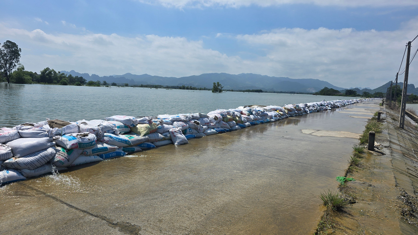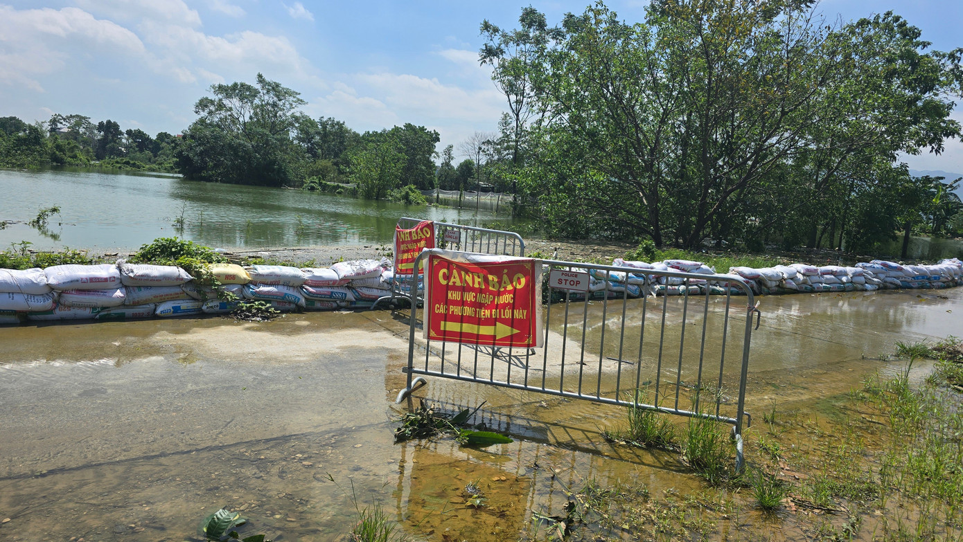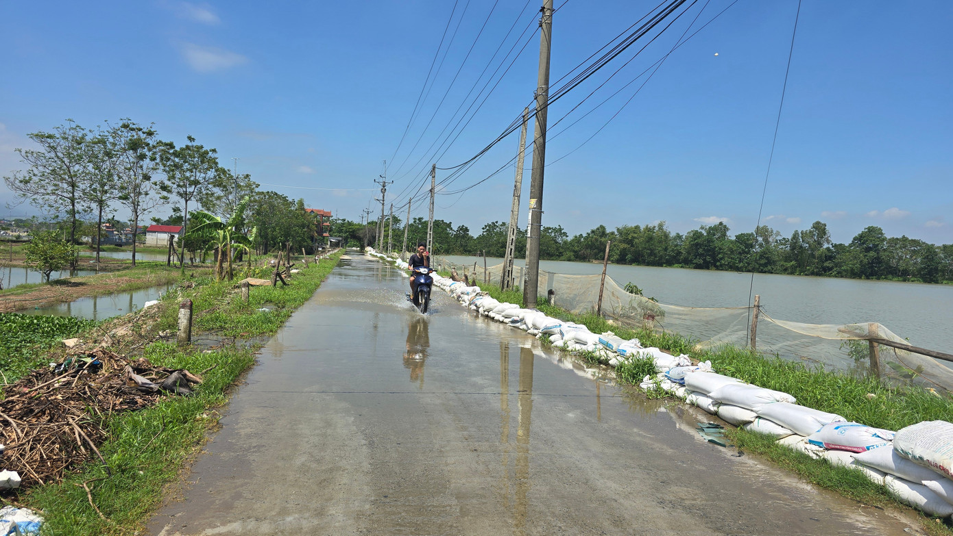 Tuyến đê Hữu Bùi 2 đã được gia cố, nhưng tại nhiều khu vực nước vẫn tràn qua đê