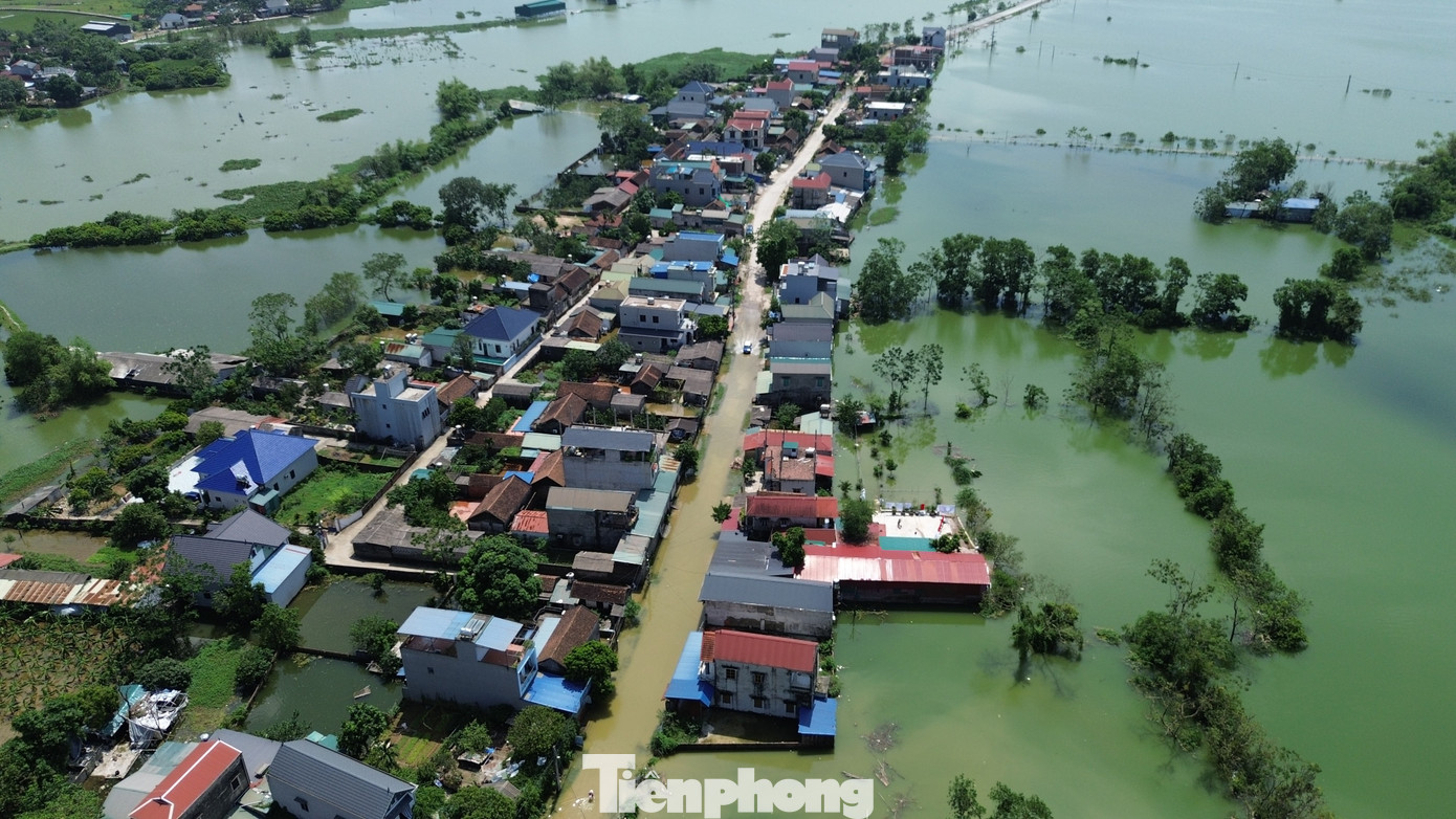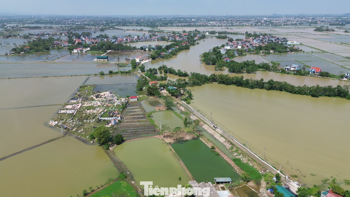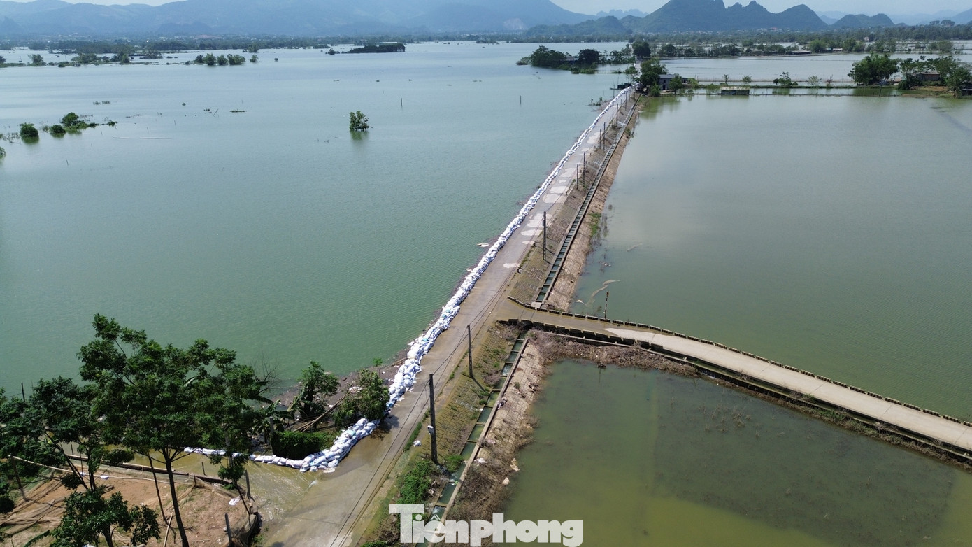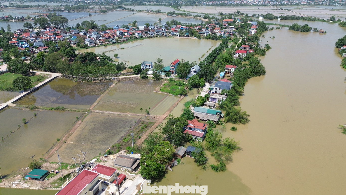 Tuyến đê Hữu Bùi 2 đã được gia cố, nhưng tại nhiều khu vực nước vẫn tràn qua đê