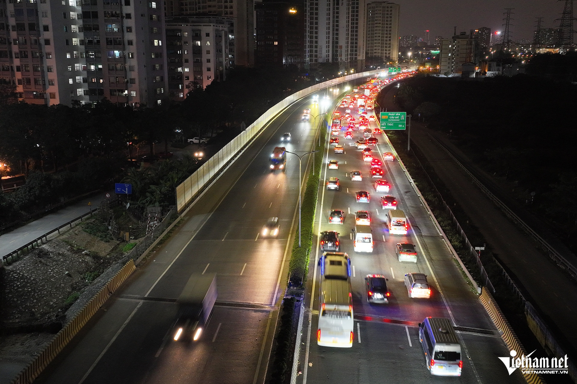 Cảnh ùn tắc nhiều giờ đồng hồ tại cửa ngõ phía Nam của Hà Nội vào tối 21/2, tức mùng 5 Tết vừa qua. Ảnh: Đình Hiếu