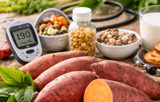 Khoai lang là thực phẩm chứa nhiều carbohydrate – thành phần có thể làm tăng lượng đường trong máu. Mặc dù khoai lang có chỉ số đường huyết trung bình và giàu chất xơ hơn so với nhiều loại tinh bột tinh chế, nhưng việc ăn quá nhiều vẫn có thể khiến đường huyết tăng. Vì vậy, người mắc bệnh đái tháo đường vẫn có thể ăn khoai lang nhưng cần kiểm soát khẩu phần hợp lý. Nên ăn cùng các thực phẩm giàu protein hoặc chất xơ như rau xanh, đậu hoặc cá để làm chậm quá trình hấp thu đường.