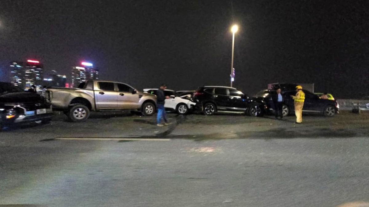 Theo thông tin ban đầu, các phương tiện đã đâm liên hoàn tại hai làn đường sát dải phân cách giữa của cầu. Tại hiện trường, ô tô mang biển kiểm soát 98A-523.XX bị hư hỏng phần đầu, trong khi 4 xe còn lại bị móp méo, biến dạng cả phần đầu và đuôi xe.