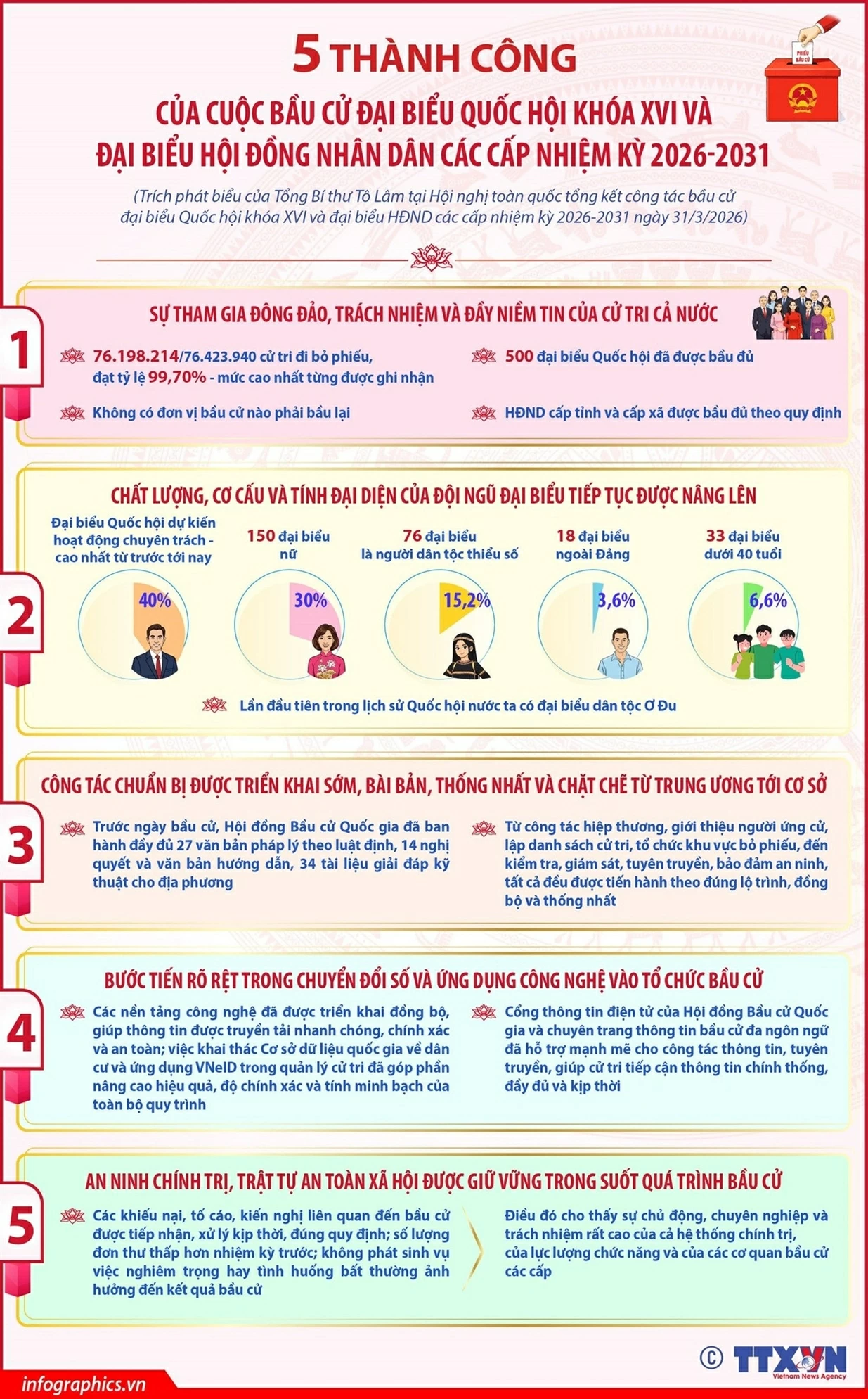 Tổng Bí thư Tô Lâm nêu 5 thành công của cuộc bầu cử đại biểu Quốc hội khóa XVI và đại biểu Hội đồng nhân dân các cấp nhiệm kỳ 2026-2031.
