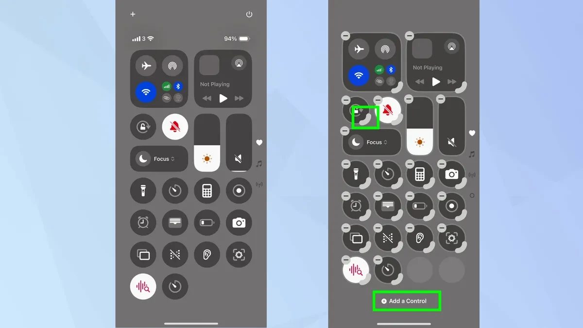 Để chỉnh sửa, vuốt xuống từ góc trên bên phải màn hình và nhấn giữ vào một khoảng trống để vào chế độ chỉnh sửa. Tại đây, bạn có thể kéo và thả các điều khiển. Đặc biệt, người dùng có thể kéo góc dưới của một số điều khiển để mở rộng chúng thành các nút lớn hơn, hiển thị thêm thông tin chi tiết mà không cần mở ứng dụng tương ứng.