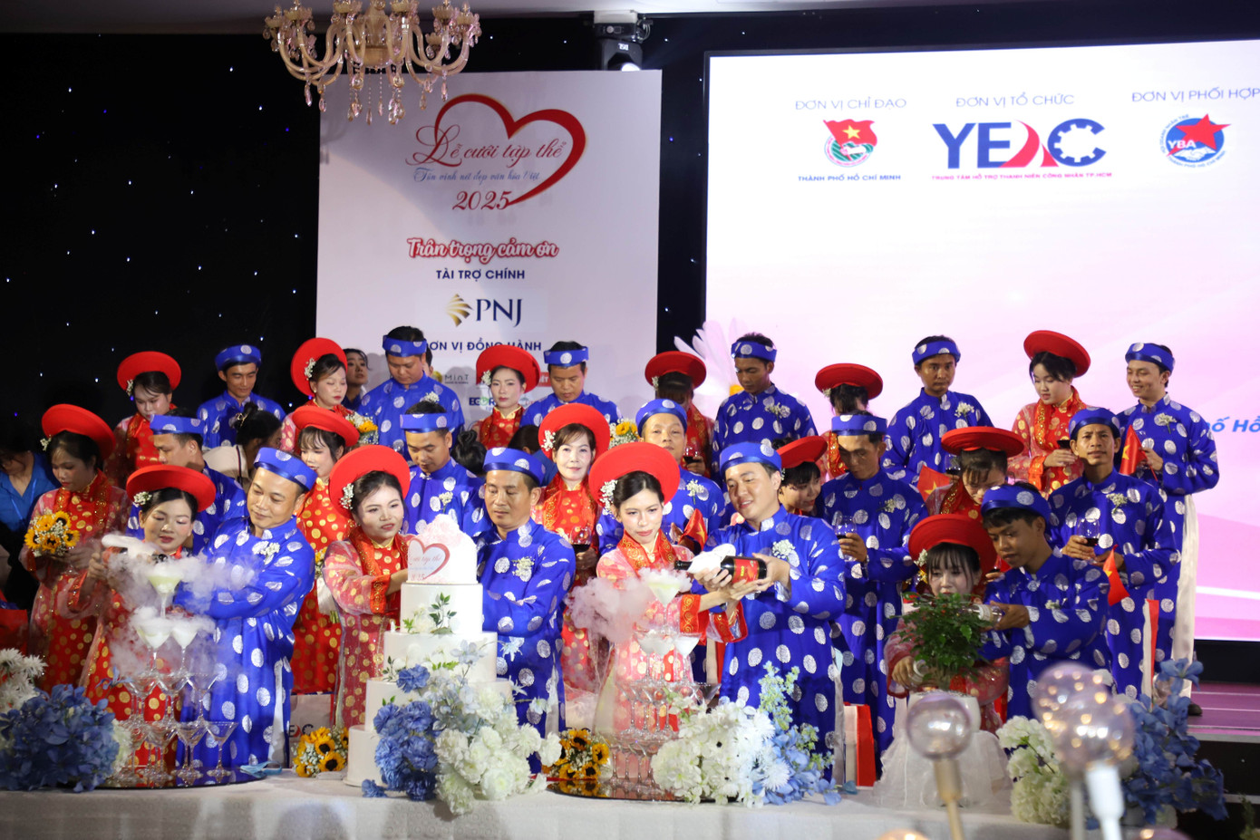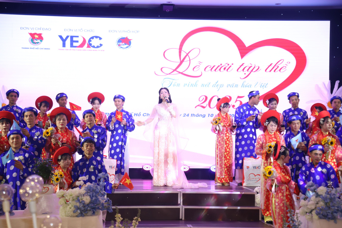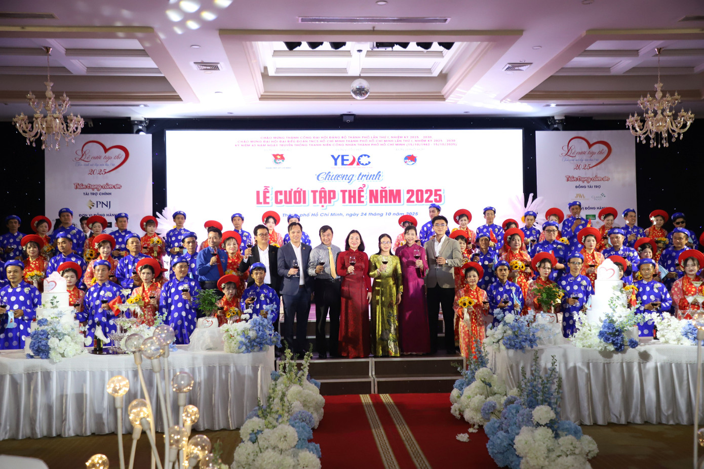 Lễ cưới tập thể năm 2025 dành tặng 50 đôi uyên ương là thanh niên công nhân, người lao động trẻ có hoàn cảnh khó khăn, do Thành Đoàn phối hợp Trung tâm Hỗ trợ Thanh niên công nhân TPHCM, Hội Doanh nhân trẻ TPHCM tổ chức đã diễn ra trưa 24/10.