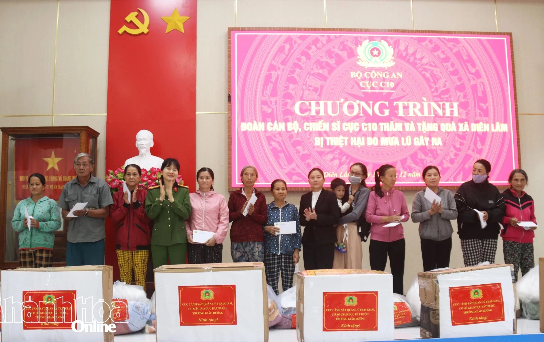 Chiều 10-12, tại xã Diên Lâm, đoàn công tác của Cục Cảnh sát quản lý trại giam, cơ sở giáo dục bắt buộc, trường giáo dưỡng (C10) - Bộ Công an đã đến thăm hỏi và trao 50 suất quà cho các hộ dân bị thiệt hại nặng trong đợt mưa lũ vừa qua. Mỗi suất quà trị giá 3 triệu đồng, bao gồm tiền mặt và các nhu yếu phẩm, qua đó góp phần hỗ trợ người dân sớm vượt qua khó khăn, ổn định cuộc sống.