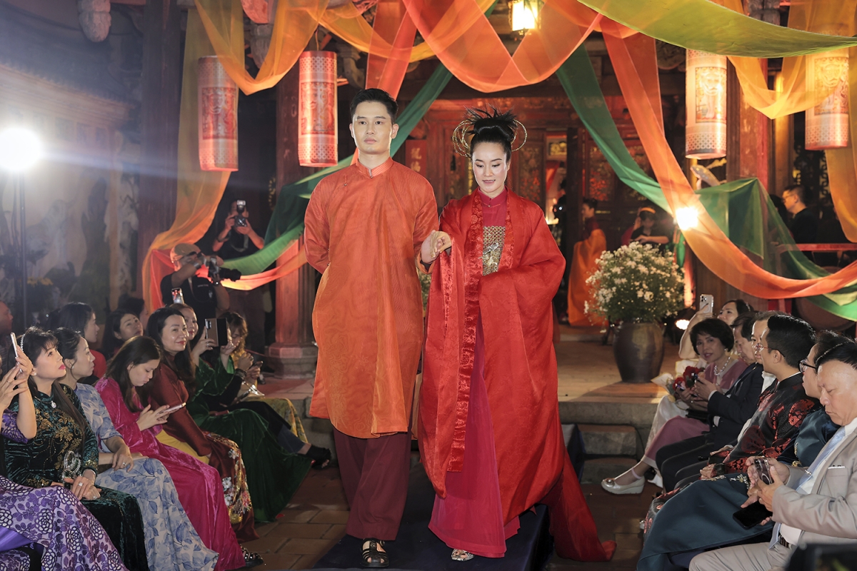 Trong đó, điểm nhấn nổi bật nhất là buổi trình diễn bộ sưu tập áo dài của nhà thiết kế David Minh Đức vừa diễn ra tại Di tích số 40 Lãn Ông, phường Hoàn Kiếm – trái tim của không gian di sản phố nghề.