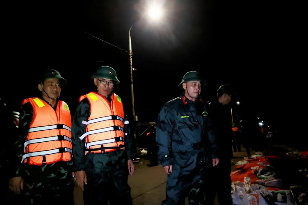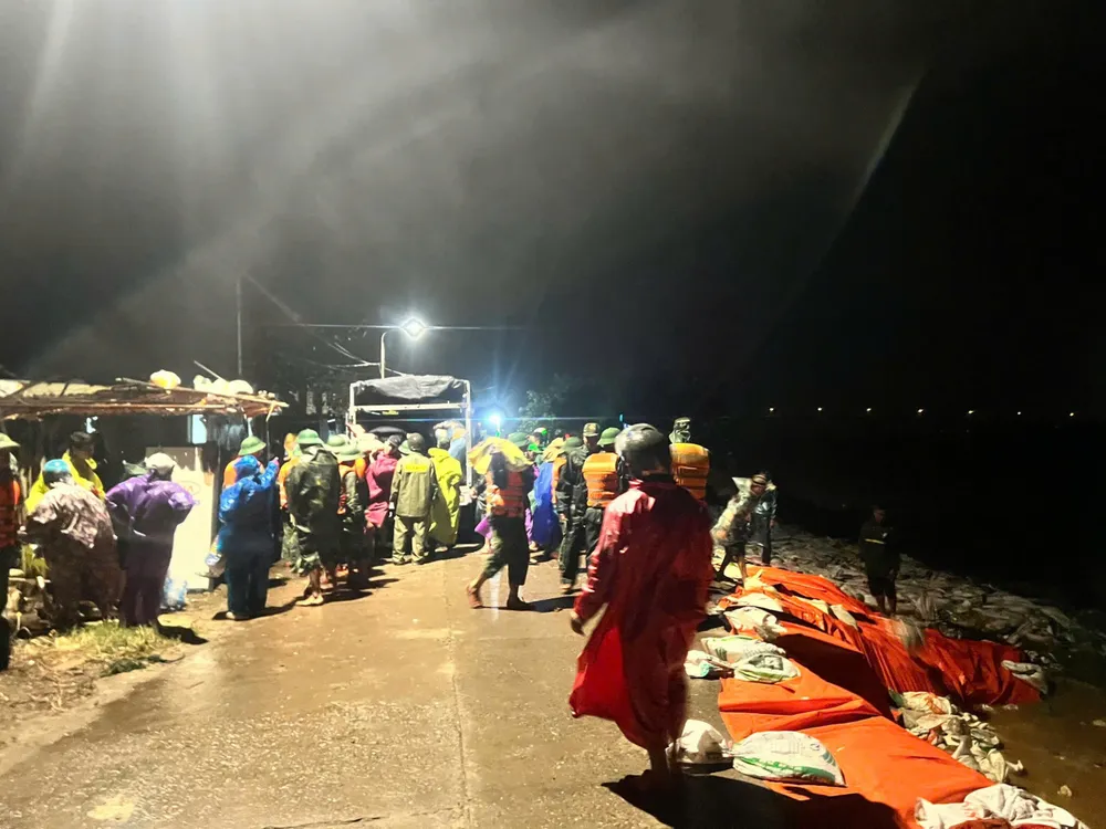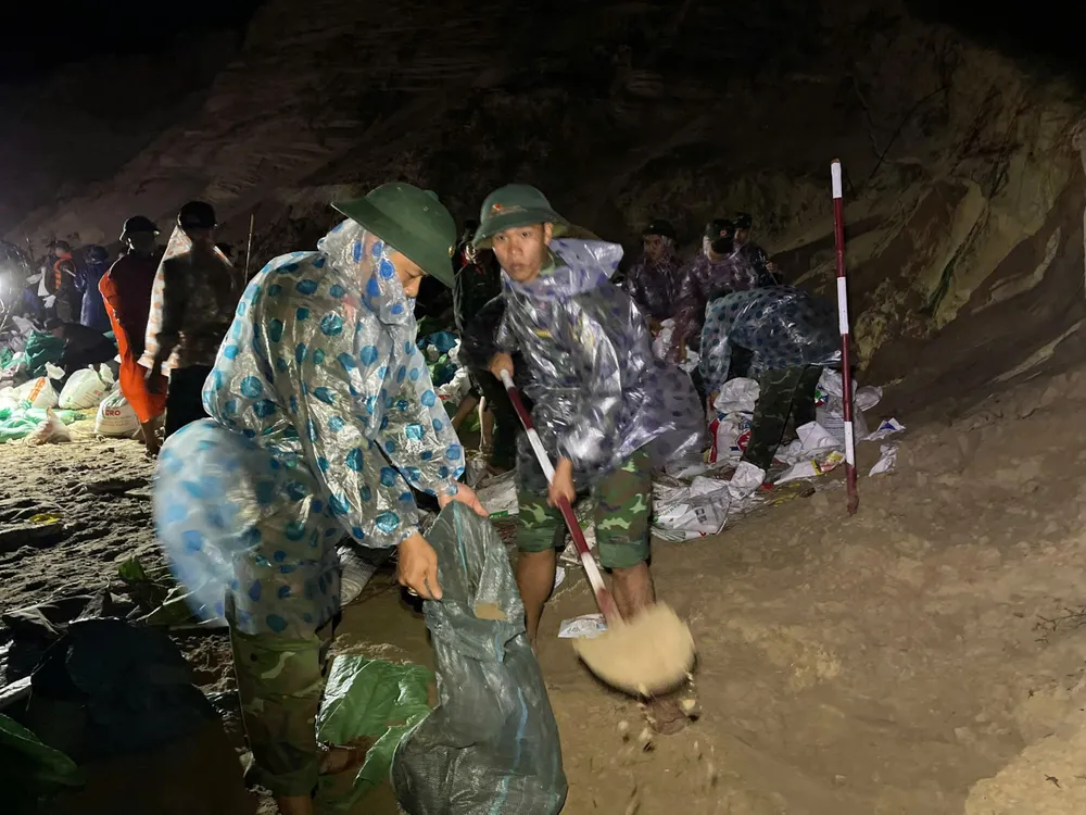 Chưa đầy một giờ, hơn 500 cán bộ, chiến sĩ đã hành quân trong đêm, tiếp cận hiện trường, ra sức giữ bờ kè.