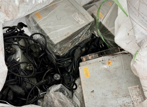 Kiểm tra hiện trường, tổ công tác thu giữ 23 bao tải, bên trong chứa 500 máy đào tiền điện tử đã qua sử dụng, nhãn hiệu Bitman, cùng 495 sợi dây cáp điện màu đen. Toàn bộ lô hàng ước tính trị giá khoảng 10 tỷ đồng.