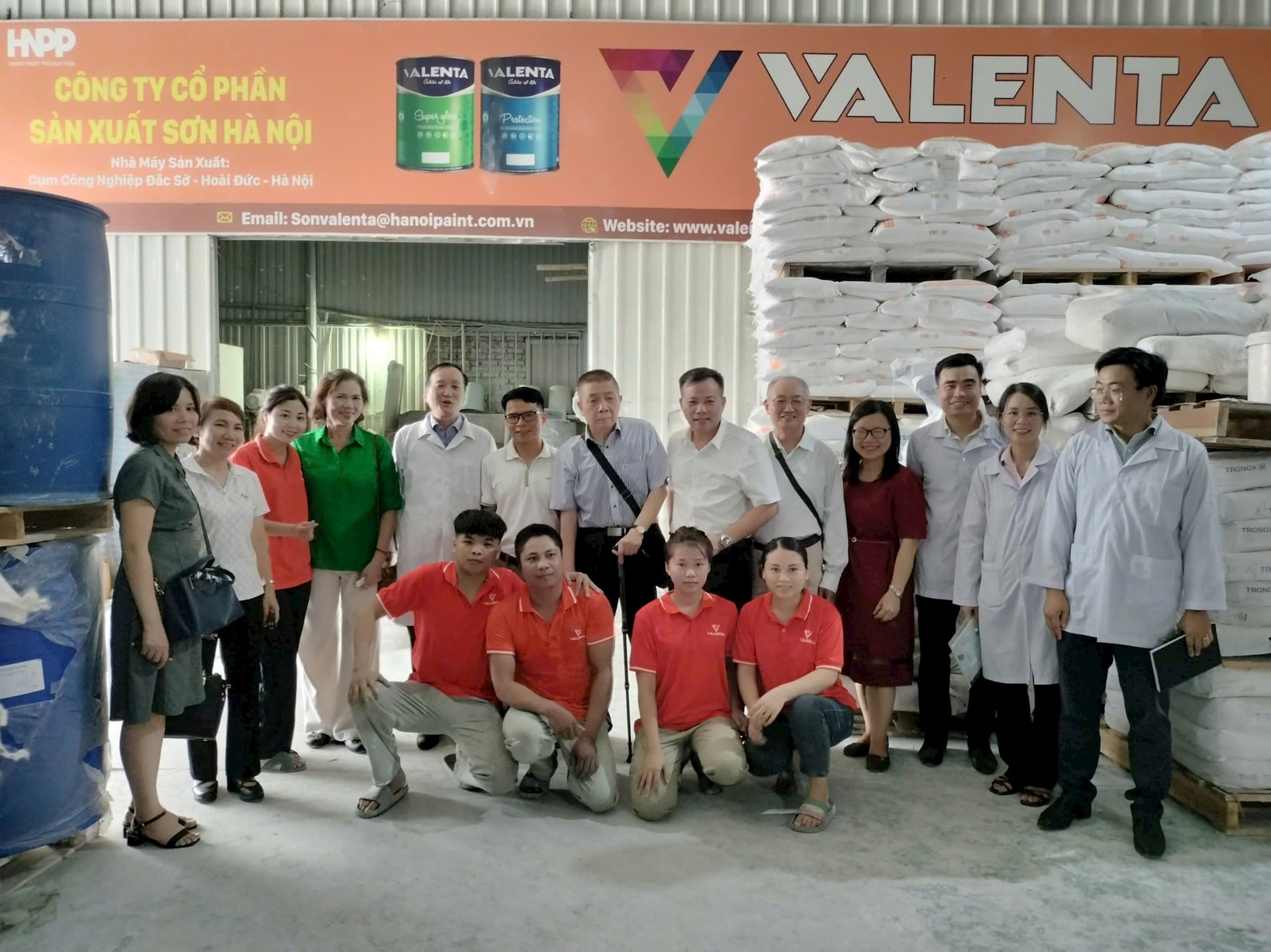 GS.TS Thái Hoàng và cộng sự cùng Ban giám khảo tại cơ sở sản xuất sơn nano đa chức năng