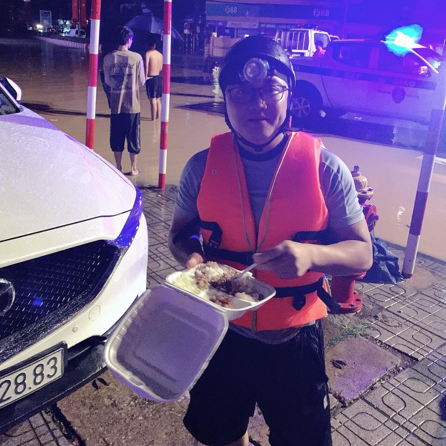 Miệt mài di chuyện, đưa người bị nạn chuyển cho lực lượng cứu hộ bên ngoài rồi lại lao vào nơi lũ dữ, anh Bùi Tùng cùng những người bạn không biết đã trải qua một đêm trắng. "Chúng tôi cứ thế đi, phớt lờ cả cái mệt, đến mức đói nhưng không buồn ăn uống, chỉ lót dạ bằng mì tôm", anh kể.