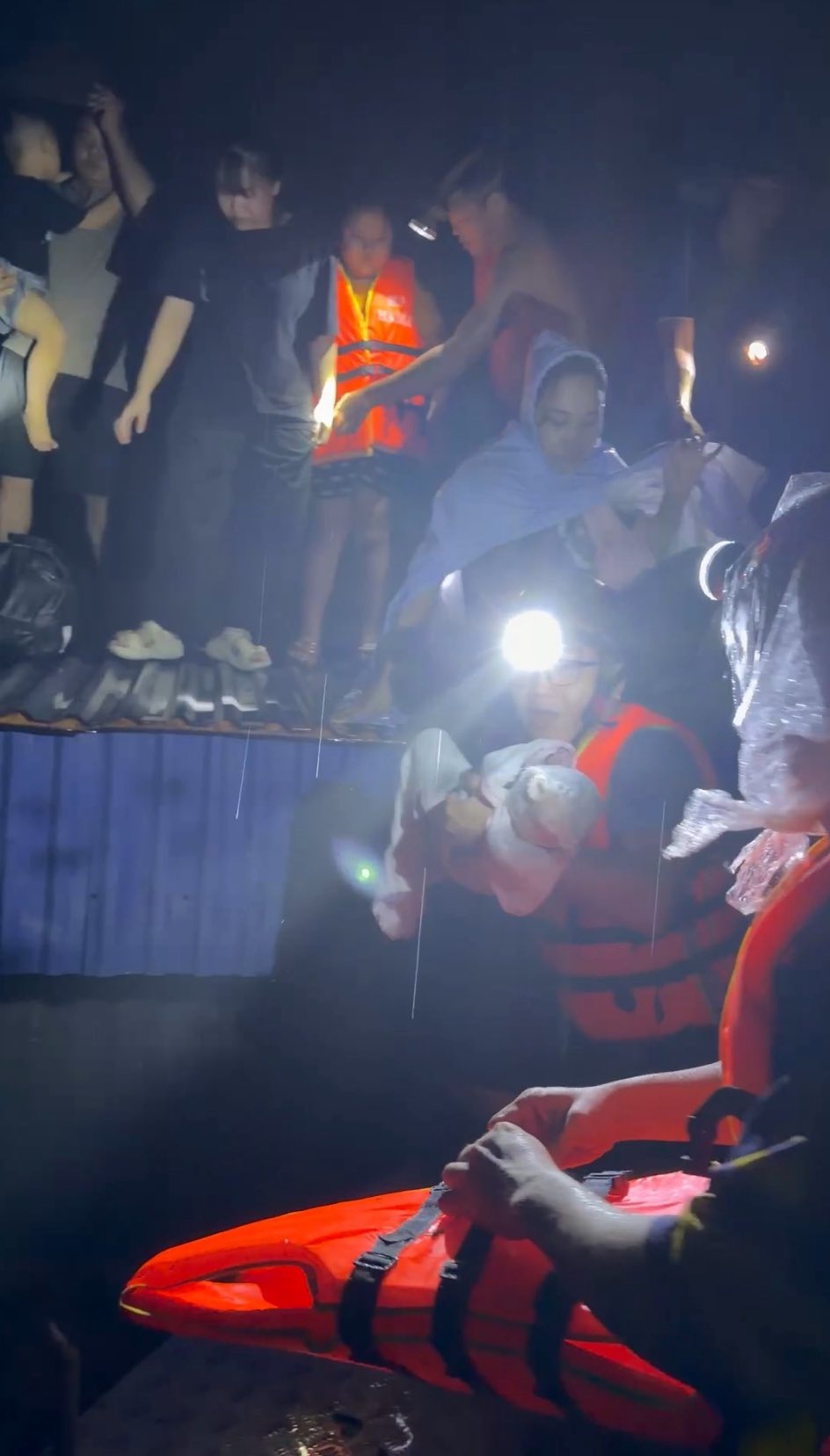 Rạng sáng 8/10, giữa lúc trời vẫn mưa tầm tã, nhóm của anh giải cứu thành công gia đình đang rét run trên mái nhà. Trong đó, có một em bé khoảng 2 tháng tuổi đi cùng mẹ.