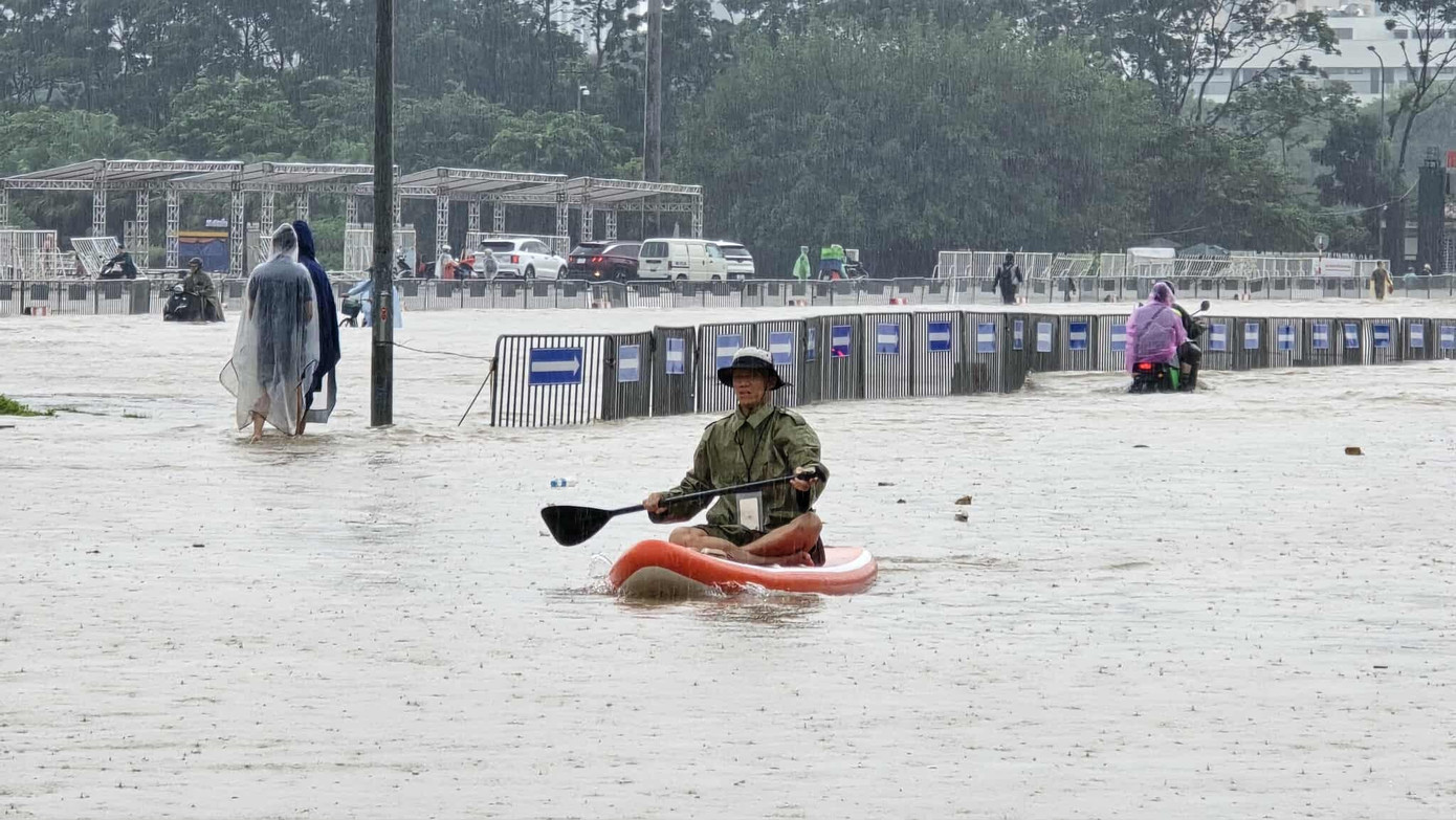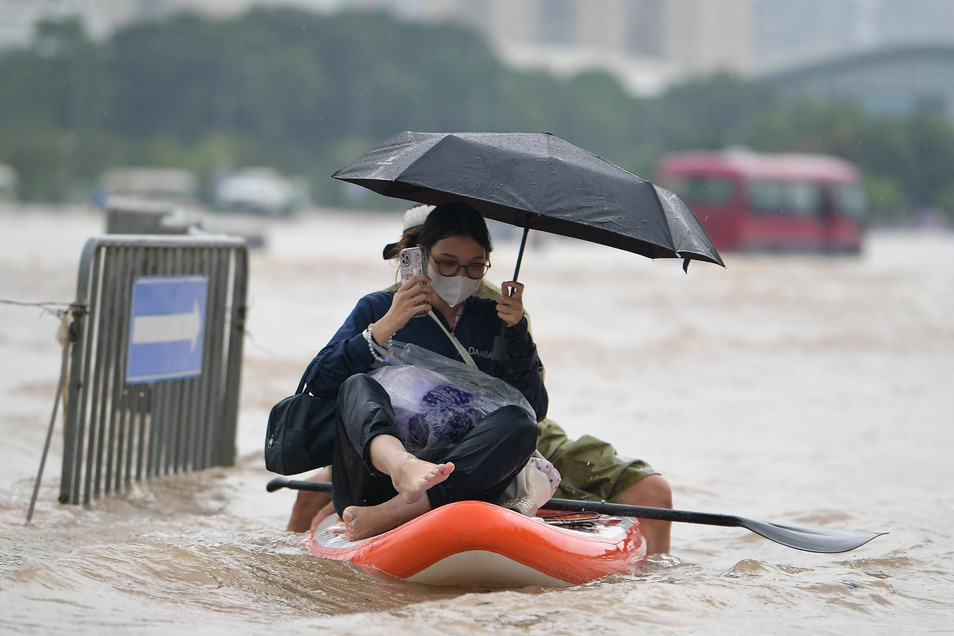 Người dân dùng thuyền di chuyển ở khu vực Mỹ Đình