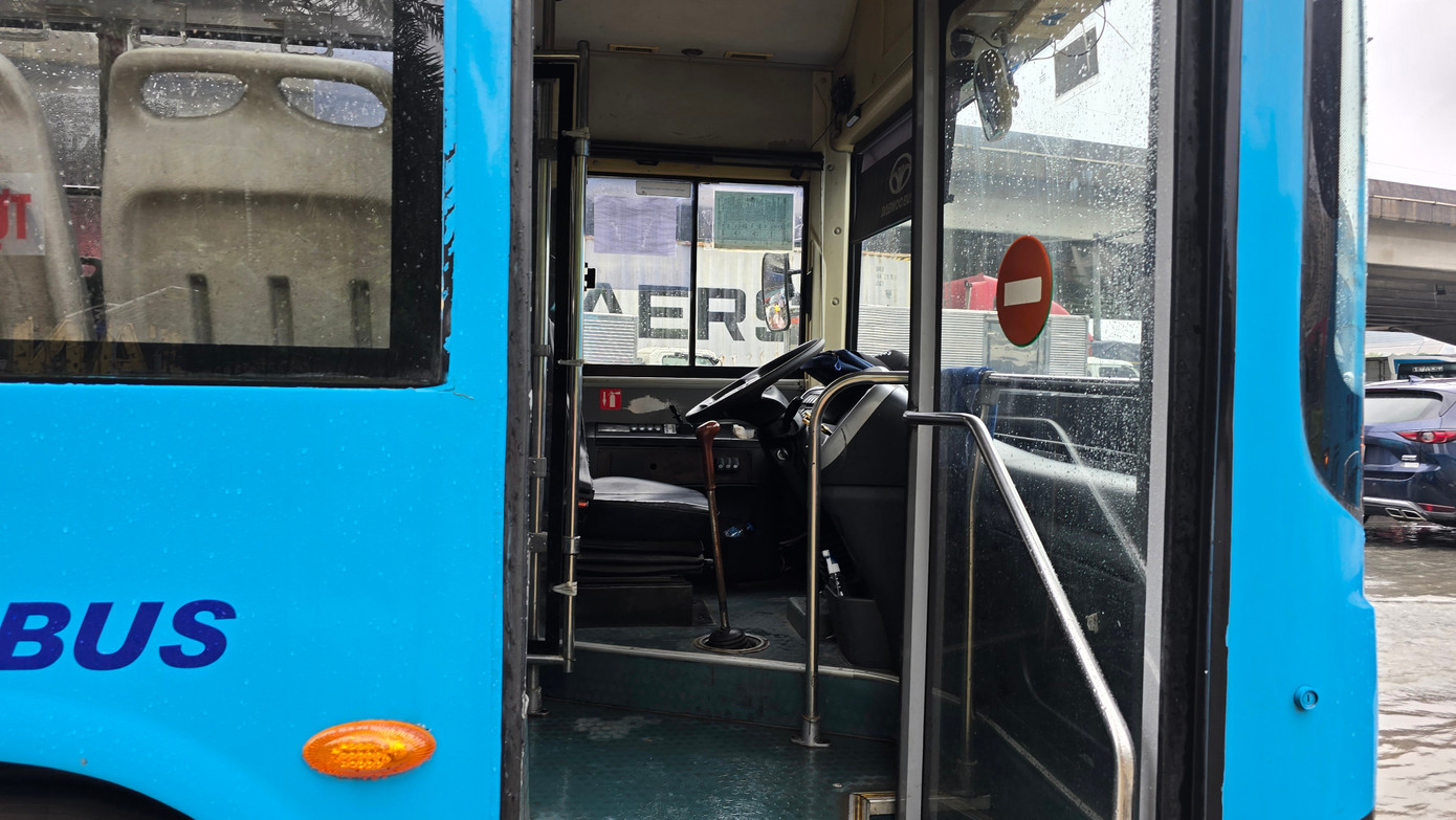 Do tắc đường kéo dài, một số tài xế xe buýt đã tắt máy ngừng di chuyển.