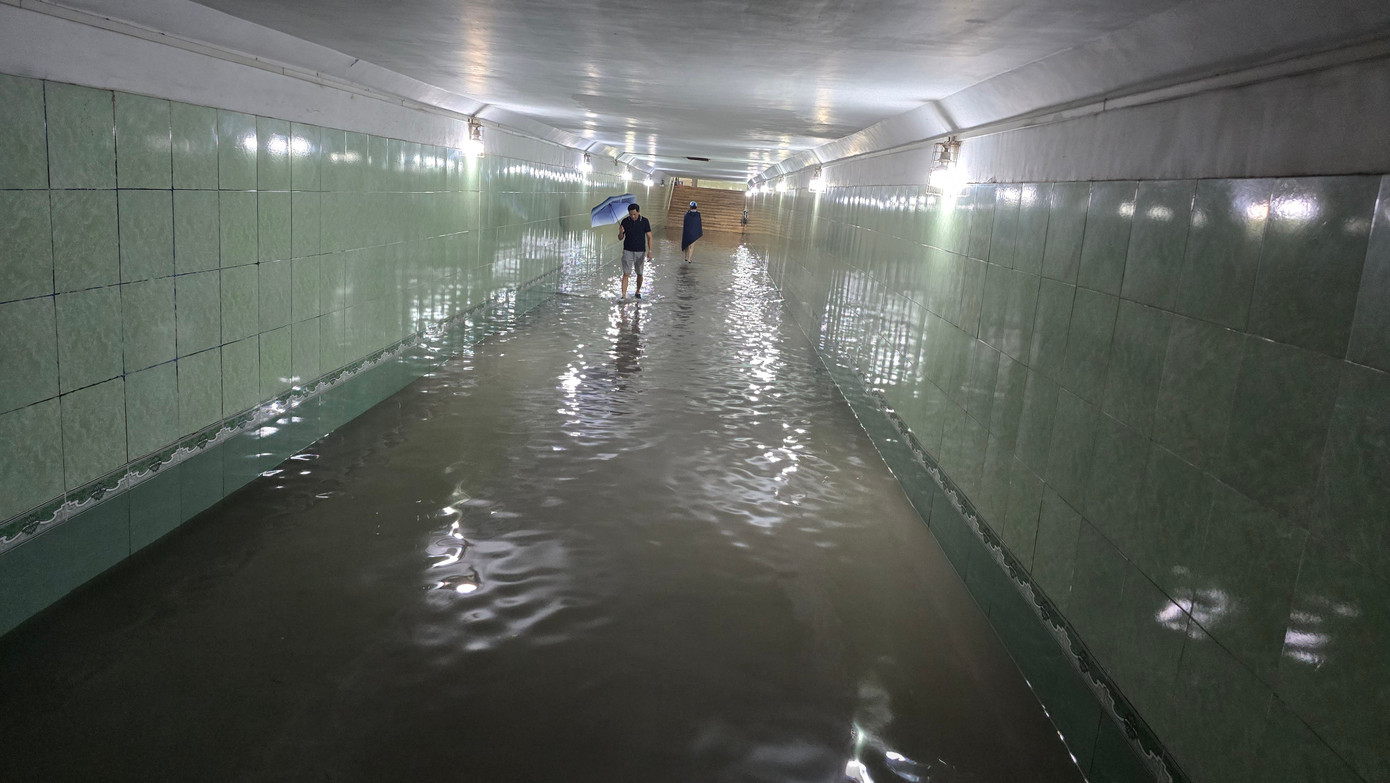 Khu vực đường hầm cho người đi bộ cũng bị ngập nước.