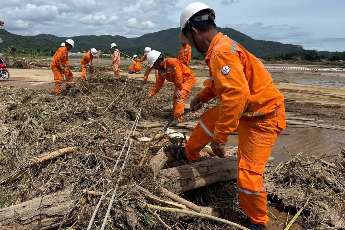 Ngành điện khắc phục sự cố lưới điện do vỡ đập Tuy Phong, tỉnh Lâm Đồng. Ảnh Báo Nông nghiệp và Môi trường
