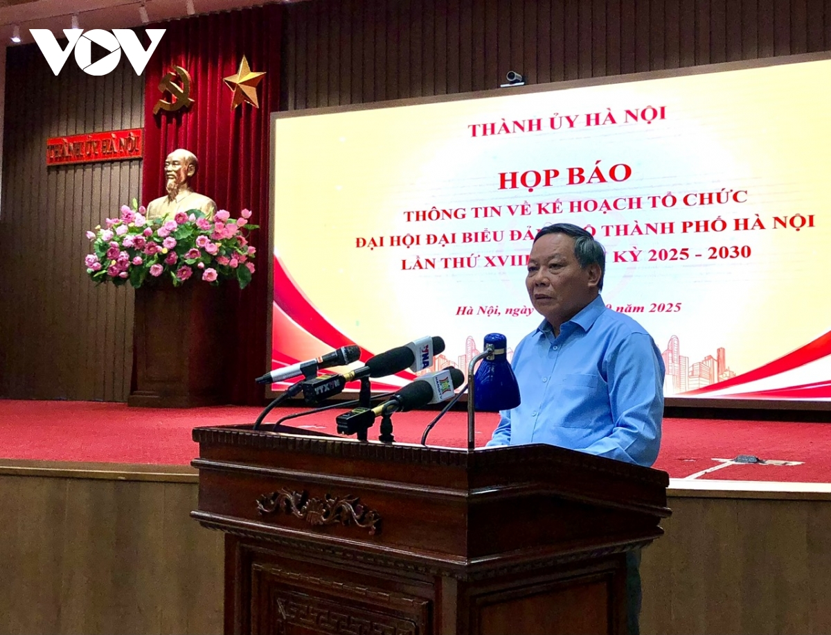 Buổi họp báo thông tin về kế hoạch tổ chức Đại hội Đại biểu Đảng bộ thành phố Hà Nội lần thứ XVIII, nhiệm kỳ 2025-2030.