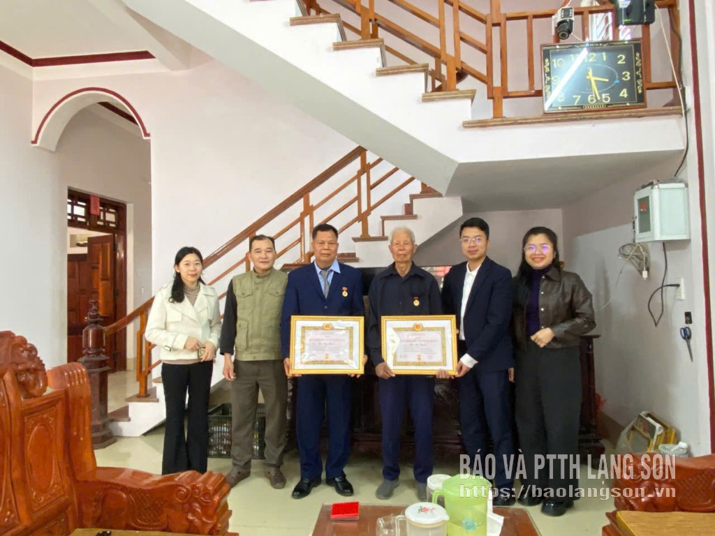 Lãnh đạo Đảng ủy xã Yên Phúc trao Huy hiệu Đảng tại nhà cho các đảng viên