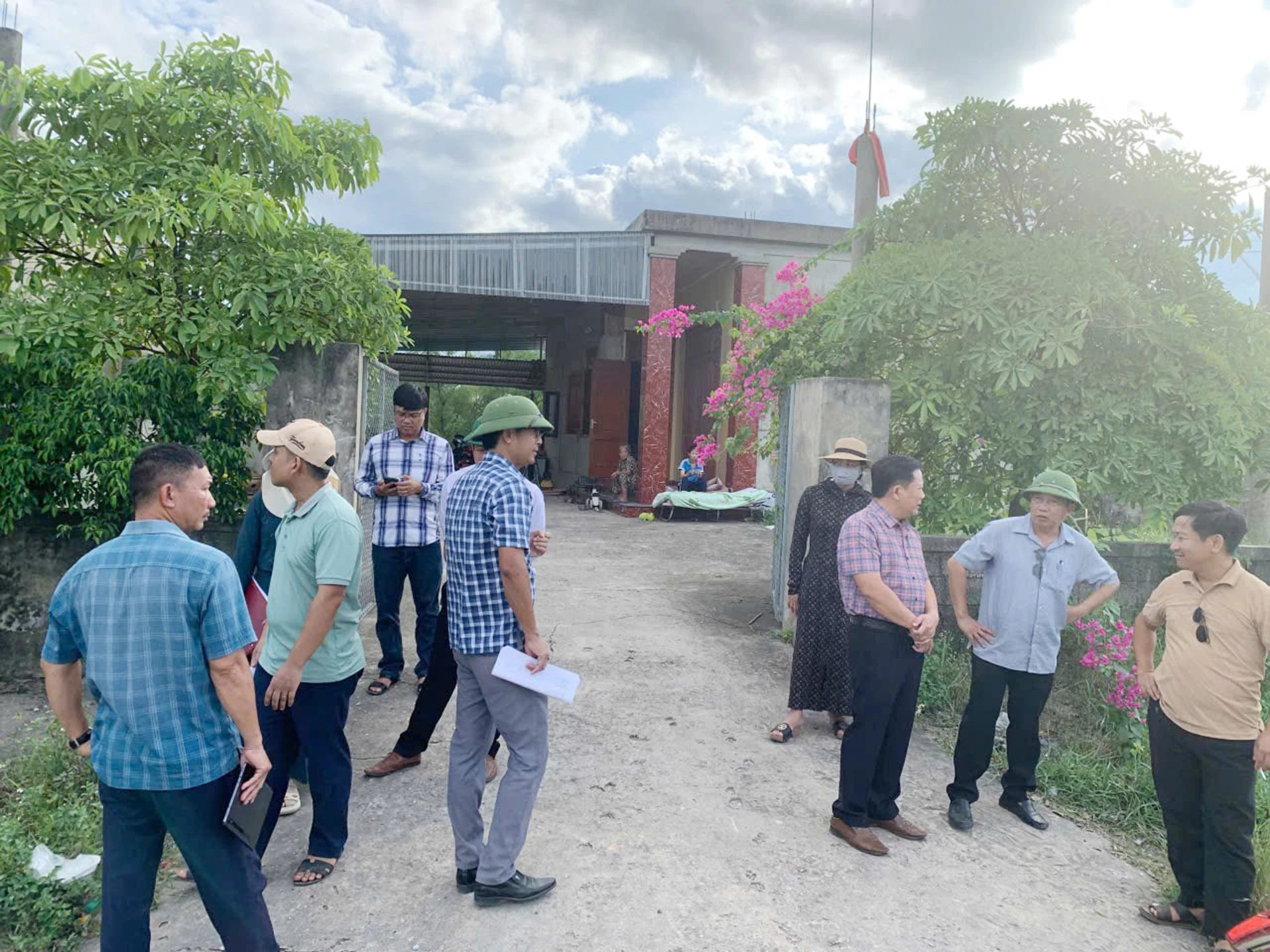 Tổ vận động đền bù, giải phóng mặt bằng gồm cán bộ Sở Xây dựng, UBND xã Cam Hồng... tổ chức gặp gỡ, đối thoại với dân - Ảnh: B.T