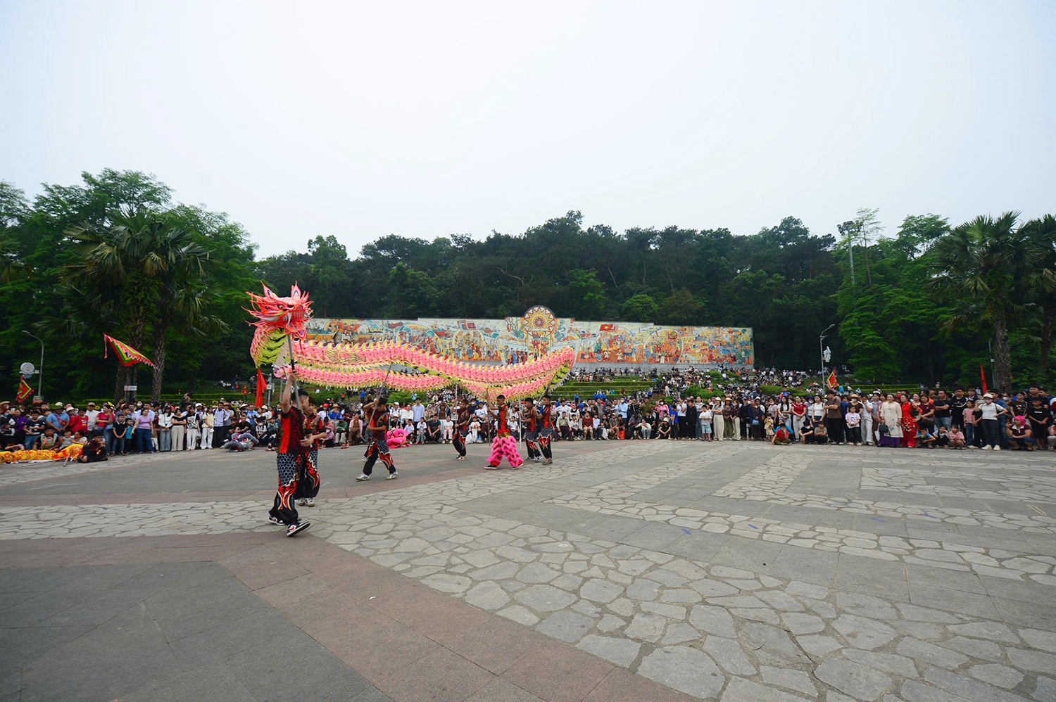 Múa rồng phục vụ du khách tại Khu Di tích lịch sử Đền Hùng.