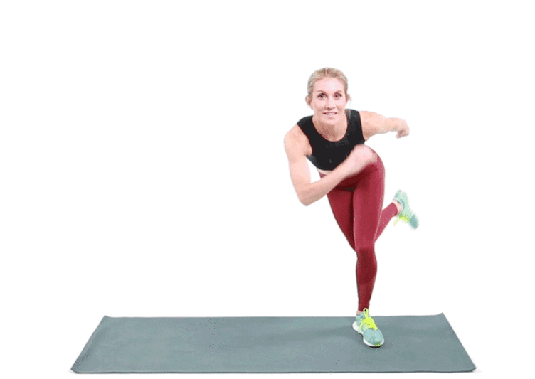 Trở lại tư thế đứng, để tăng độ khó, hãy thêm một cú nhảy trước khi lặp lại động tác.