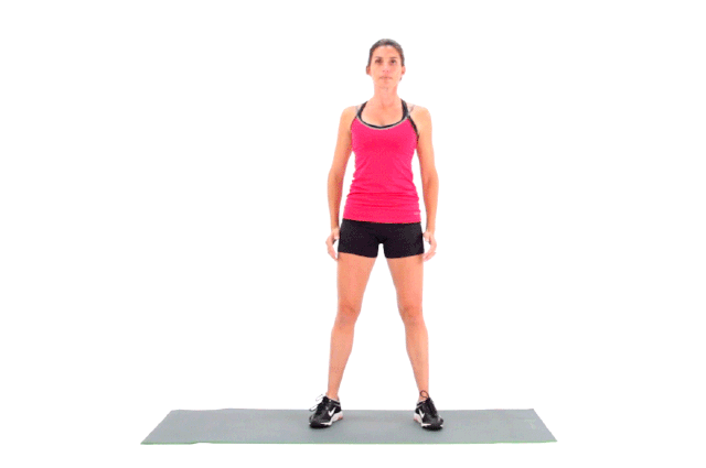 Đứng với hai chân rộng hơn hông một chút và các ngón chân hướng về phía trước hoặc hơi ra ngoài; giữ hai tay ngang hoặc duỗi thẳng hai tay ra phía trước ngang vai.