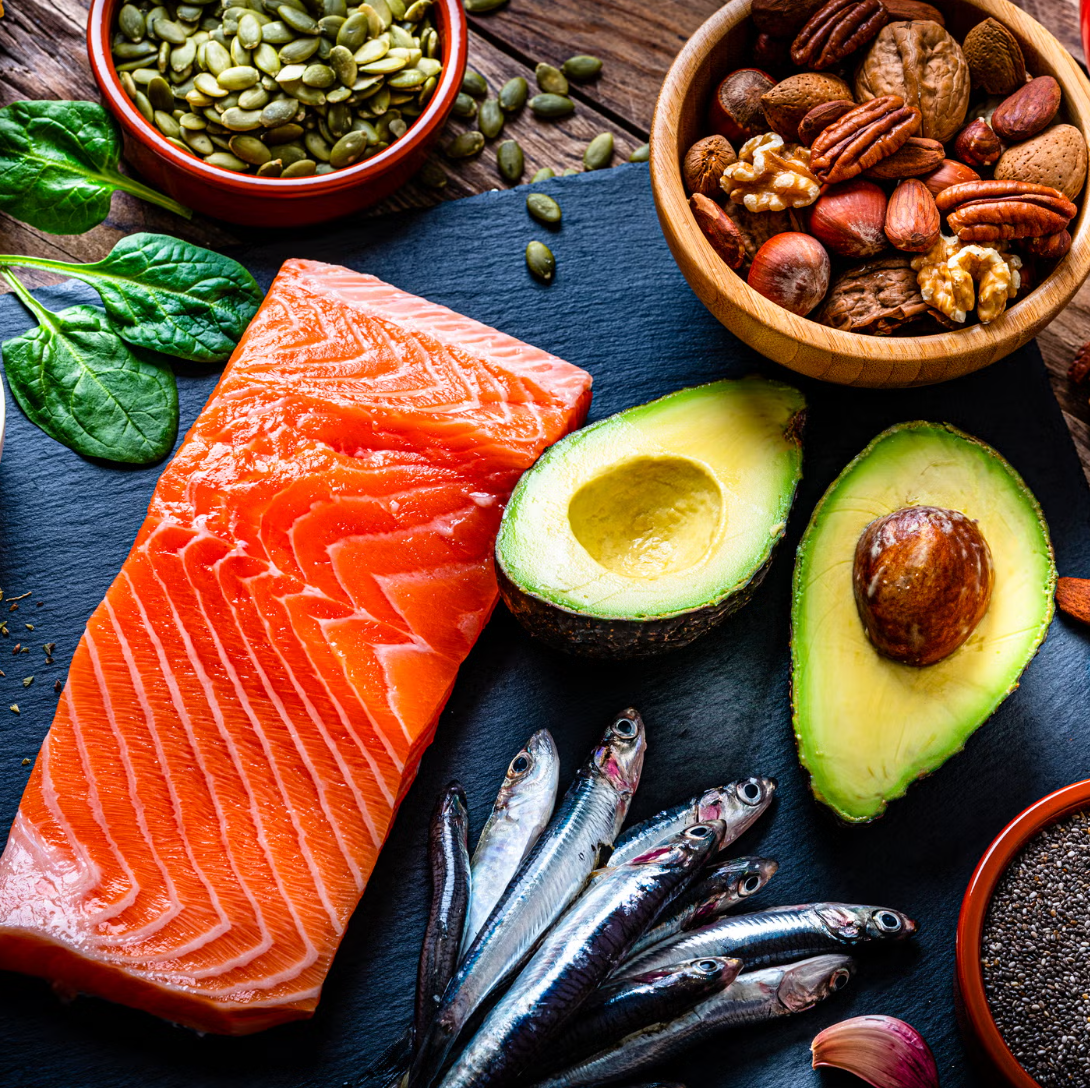 Axit béo omega-3, có nhiều trong cá hồi, cá thu, cá trích, cá trống và cá mòi, đã được chứng minh giúp giảm đường huyết lúc đói, chỉ số HbA1c và cải thiện kháng insulin. Một số nghiên cứu ghi nhận hiệu quả rõ rệt khi bổ sung 1.000-2.000 mg omega-3 mỗi ngày trong thời gian tối thiểu 8 tuần.