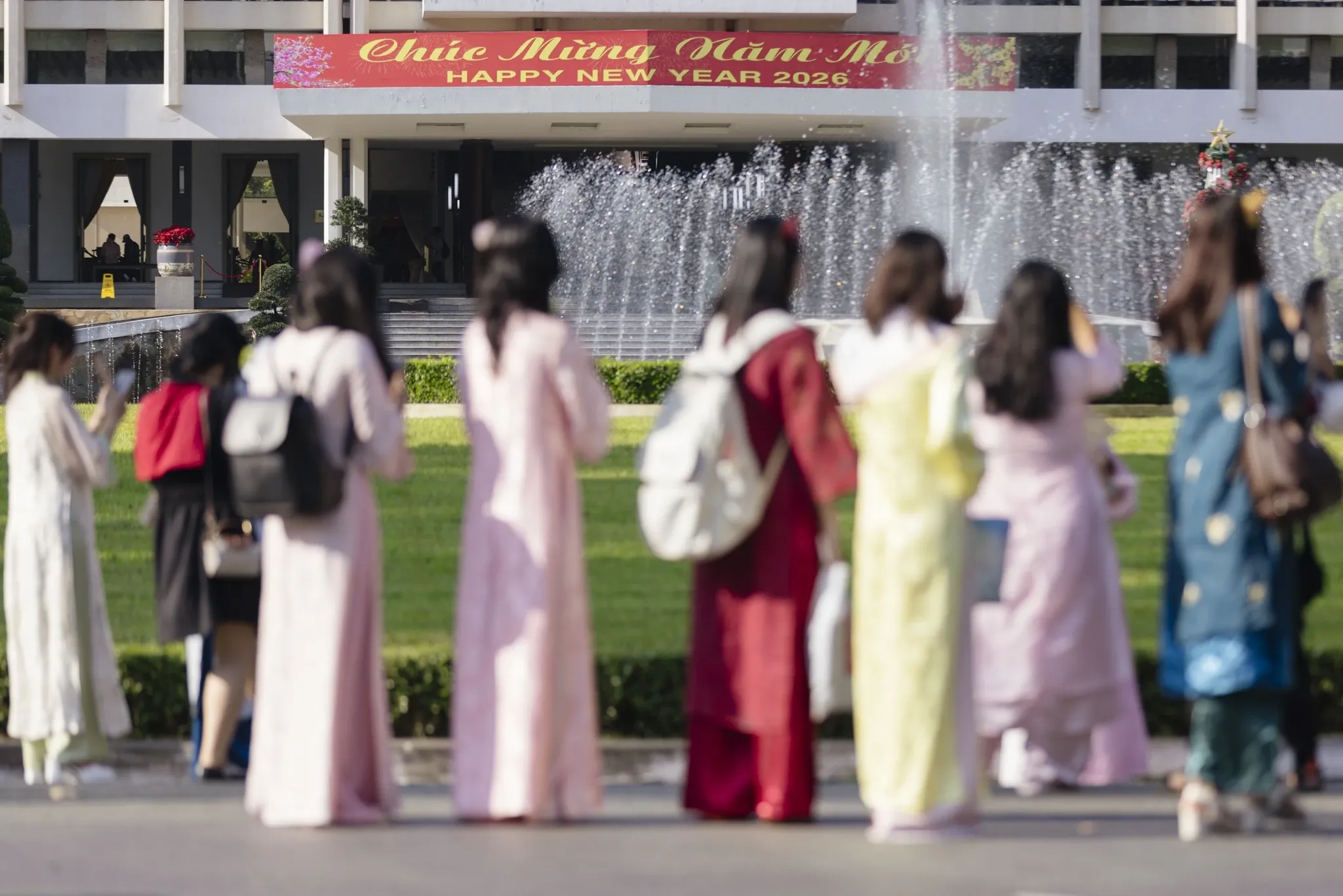 Mỗi dịp lễ, Tết hay kỷ niệm đặc biệt, nhu cầu chụp ảnh áo dài tại TP.HCM lại tăng cao. Bên cạnh những địa điểm quen thuộc, nhiều không gian mới như tu viện Khánh An (phường An Phú Đông) trở thành điểm check-in được giới trẻ lựa chọn. Công trình gây ấn tượng với kiến trúc mang phong cách Phật giáo Nhật Bản, nổi bật với mái ngói cong, hành lang gỗ và không gian tĩnh lặng hiếm có giữa đô thị. Ảnh: Khương Nguyễn.